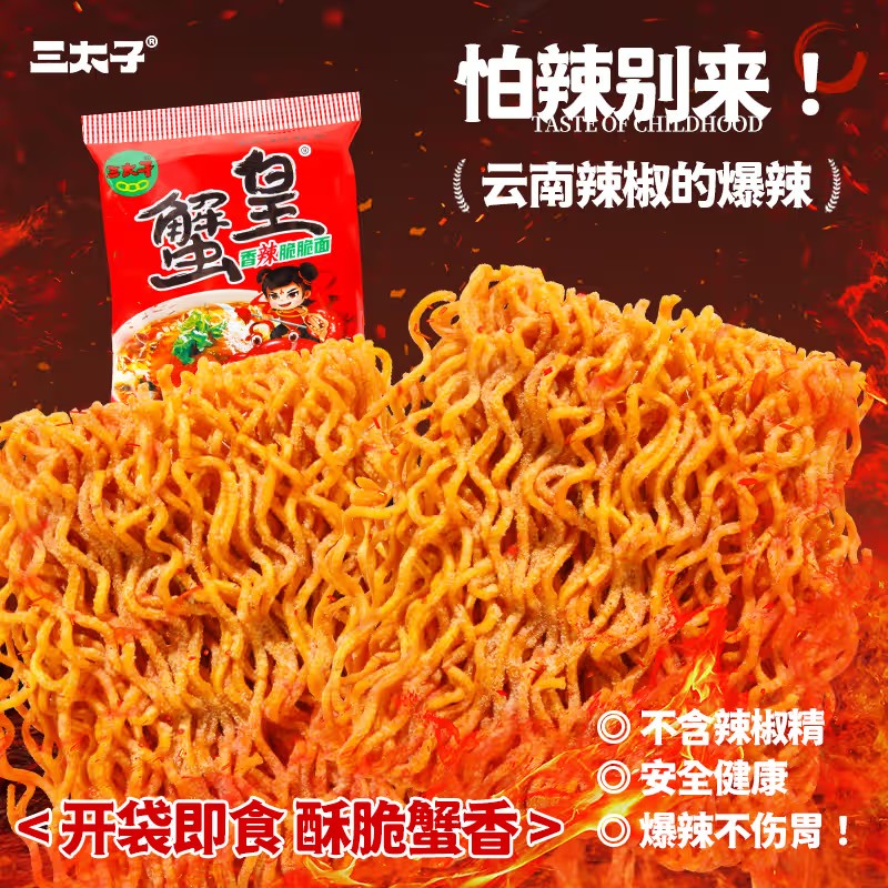 三太子香辣蟹黄面15克20包爆辣干脆面零食整箱装 干吃面香爆脆怀旧
