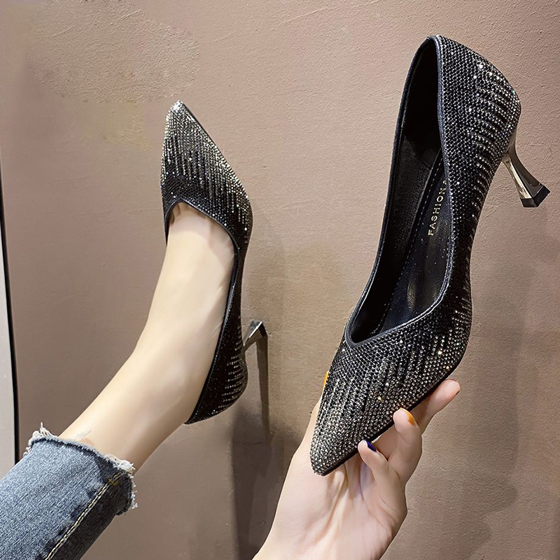 宽楦羊皮尖头细跟通勤浅口单鞋 大码 黑松露 秋冬女鞋 7or9黑色高跟鞋