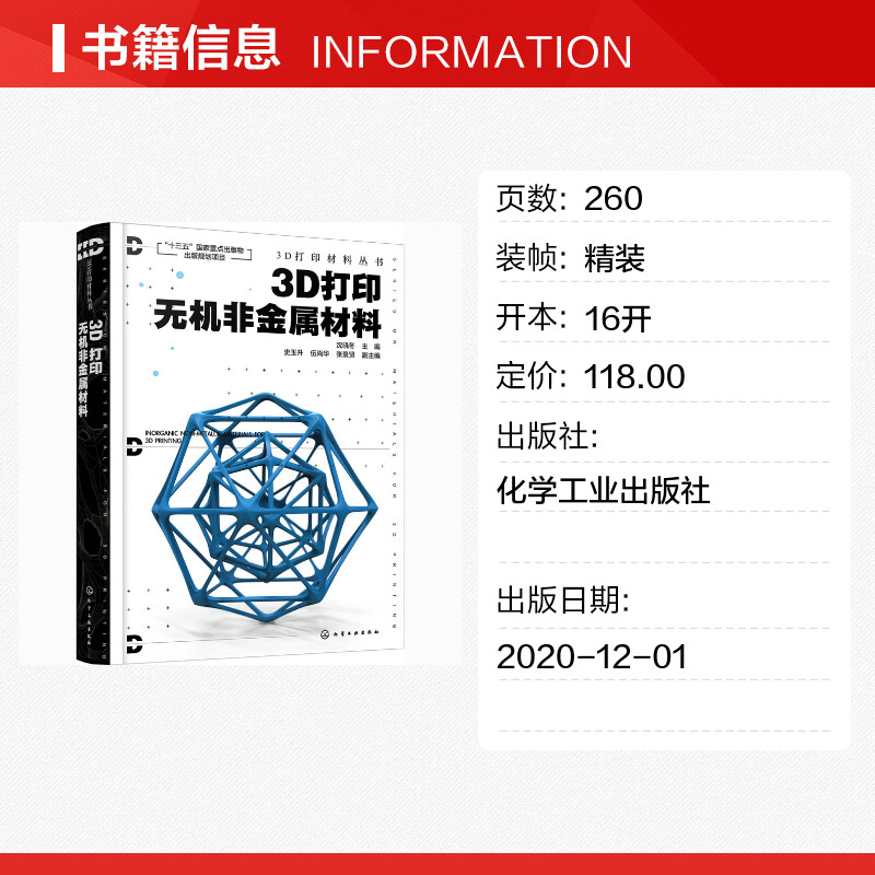 机械工程专业科技 编 新华书店正版 图书籍 社 3D打印无机非金属材料 化学工业出版 沈晓冬
