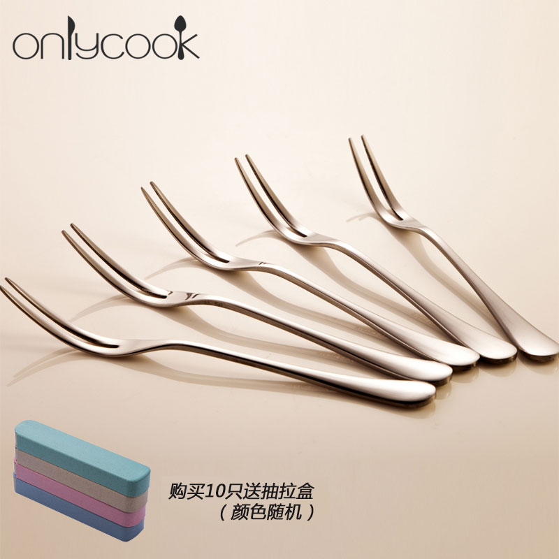 甜品叉水果签5支套装 创意月饼叉子 水果叉不锈钢蛋糕叉 onlycook