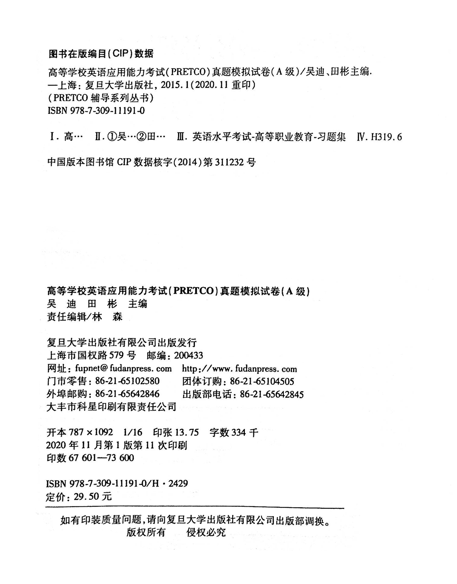 真题模拟试卷 PRETCO A级 吴迪 高等学校英语应用能力考试模拟与全真试题集 正版 田彬 复旦高等学校英语应用能力考试