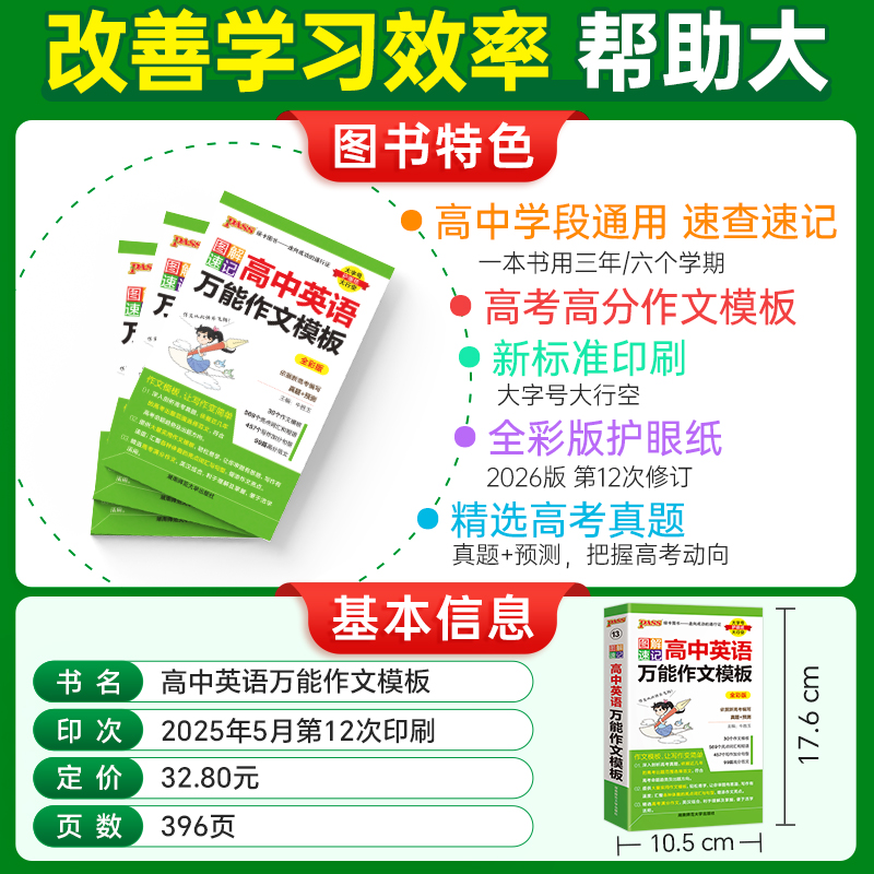 图解速记高中英语万能作文模板真题训练亮点词汇短语加分句型pass绿卡图书高一高二高三高考满分高分范文考前冲刺备考资料