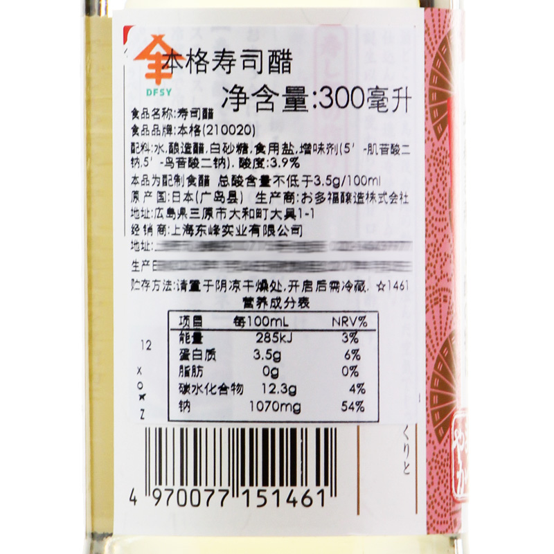 包邮 日本寿司醋原装 进口米醋多福家用紫菜包饭材料醋小瓶300ml