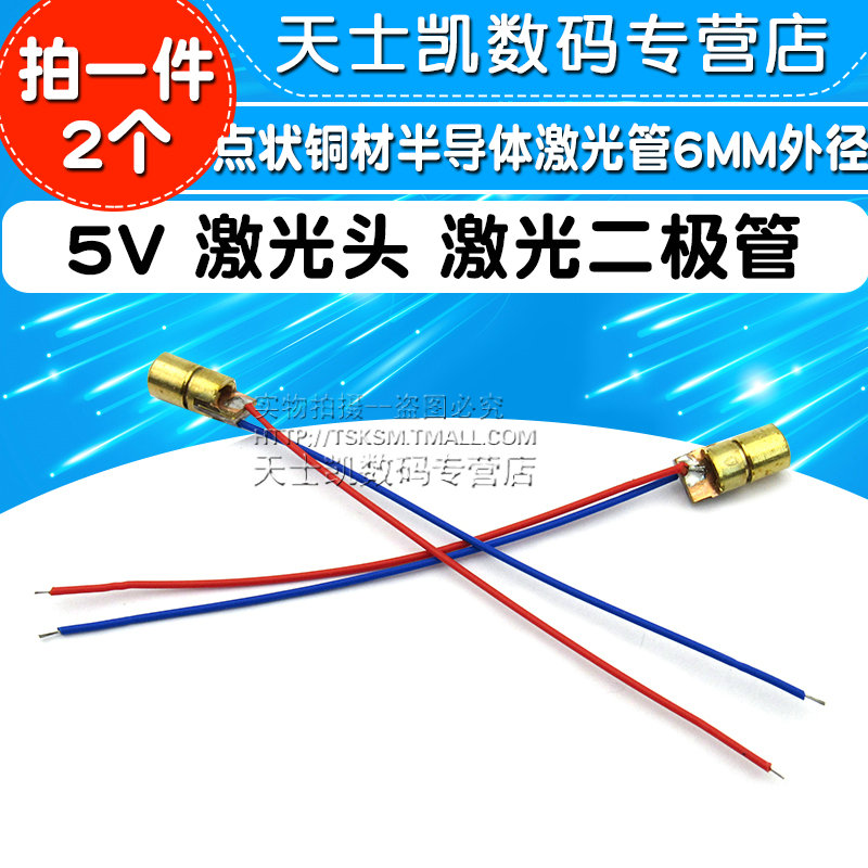 5V激光头激光二极管传感器点状铜材半导体器件激光管6MM外径 2个