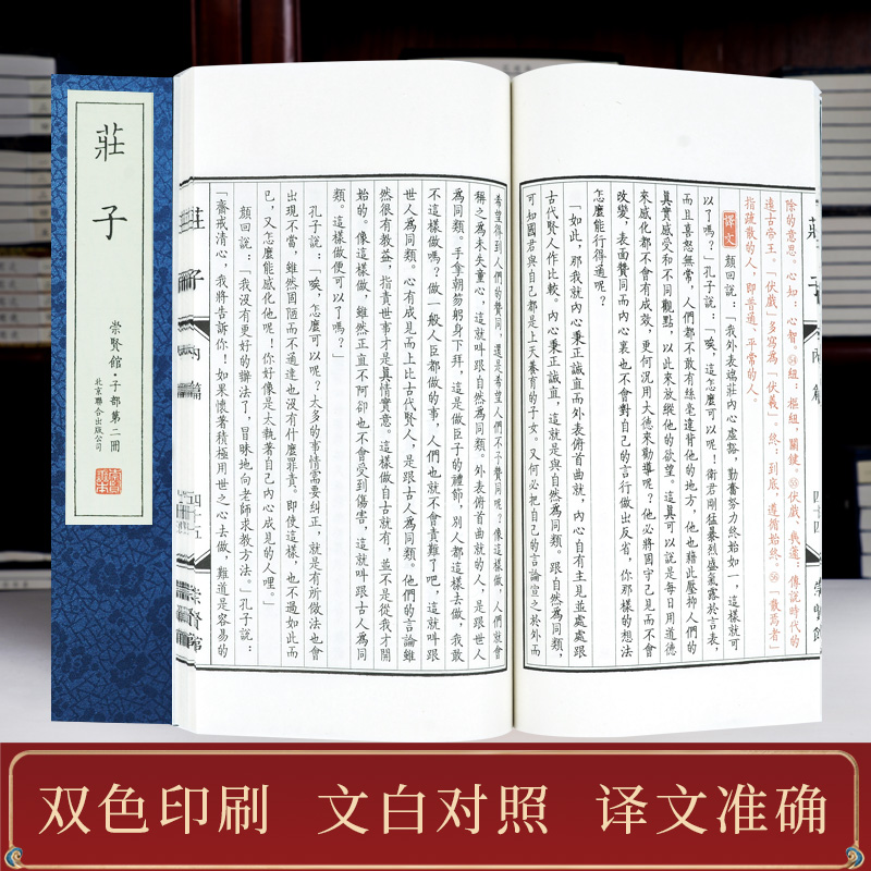 书 崇贤馆藏书 手工宣纸线装 一函五册 中国哲学名著逍遥游齐物论道家书籍庄周繁体竖排文白对照 庄子