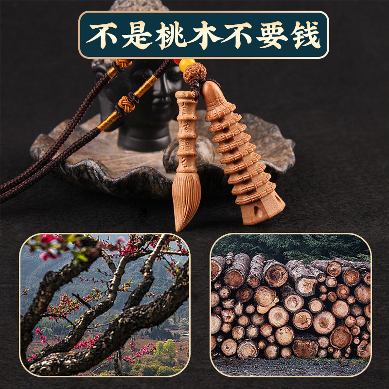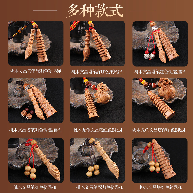 桃木文昌塔文昌笔钥匙扣挂件吊坠饰品实木质制9层金蝉知了龙龟