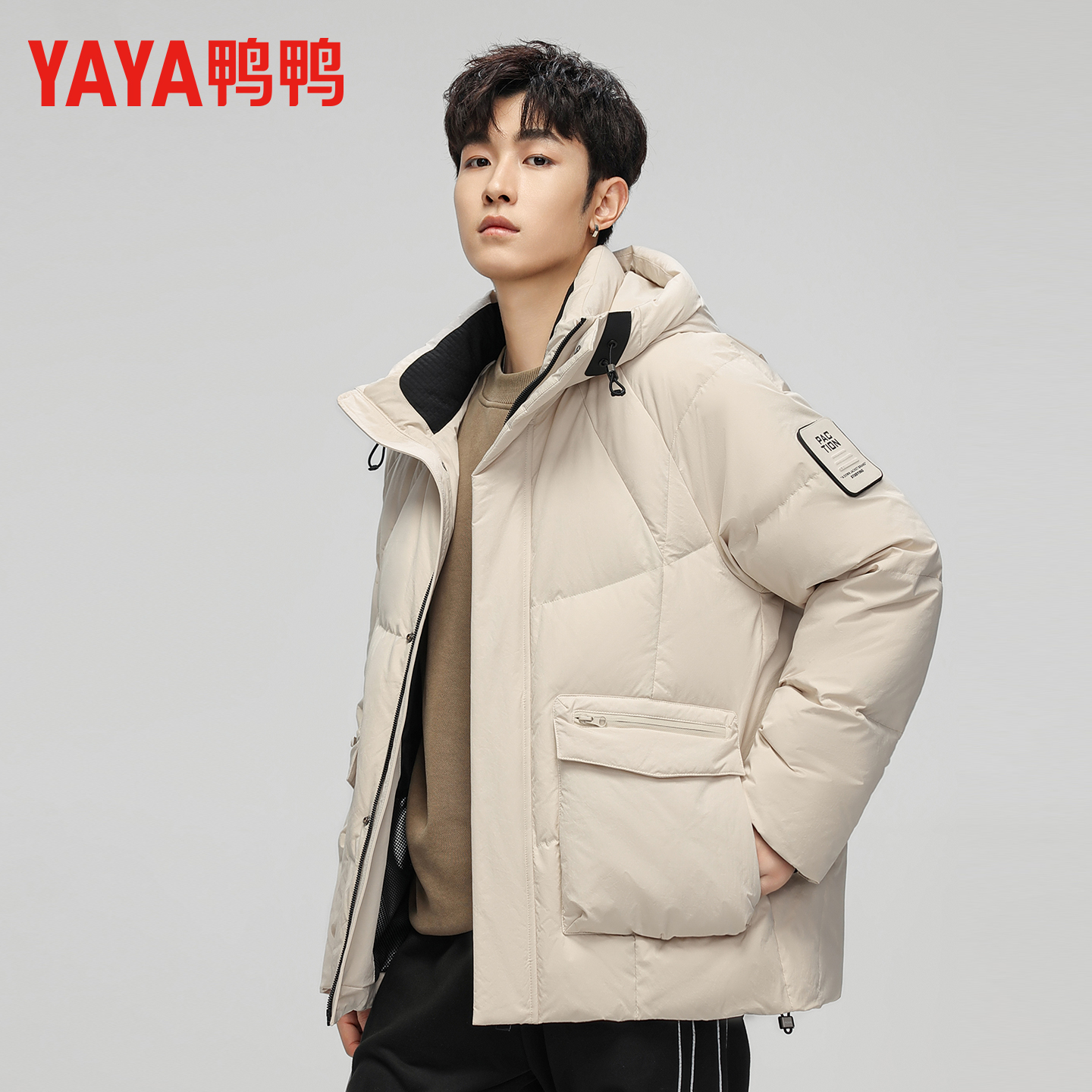 户外防风保暖连帽外套潮流面包服 新款 准者短款 运动羽绒服男子冬季