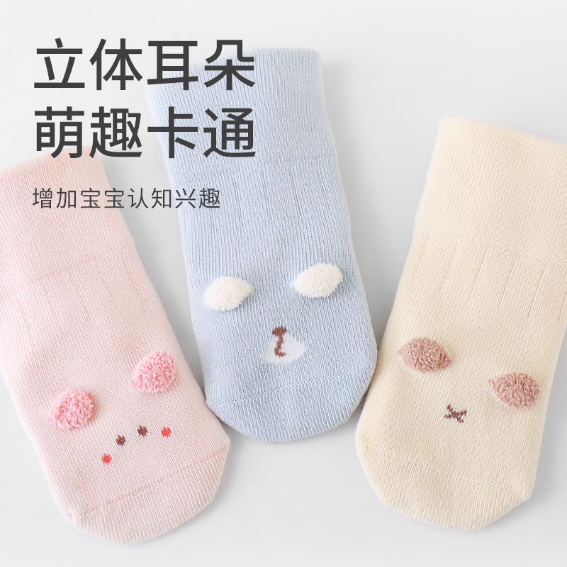 新生婴儿袜子春秋冬季 A类棉0到3个月6宝宝松口无骨幼儿中筒袜 薄款