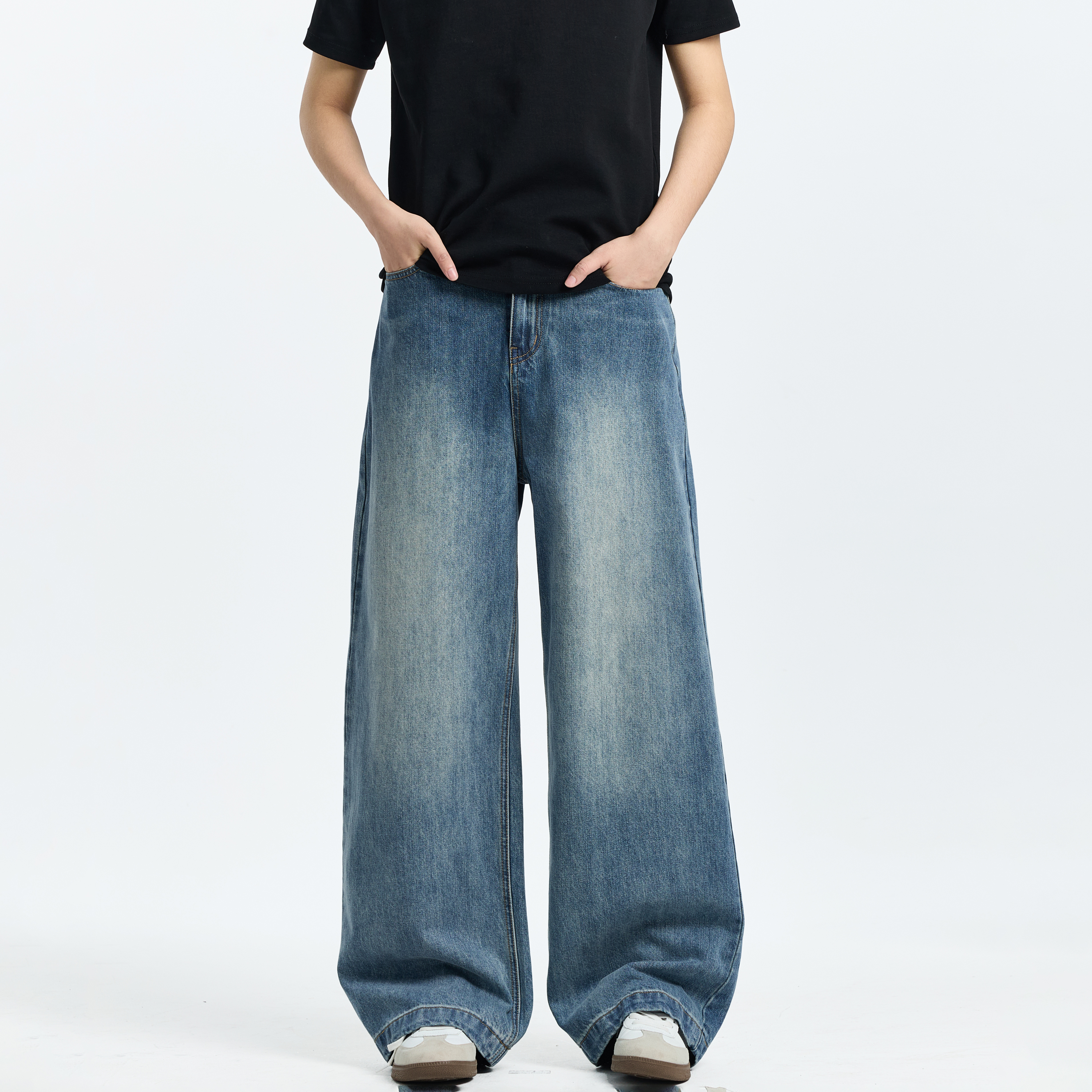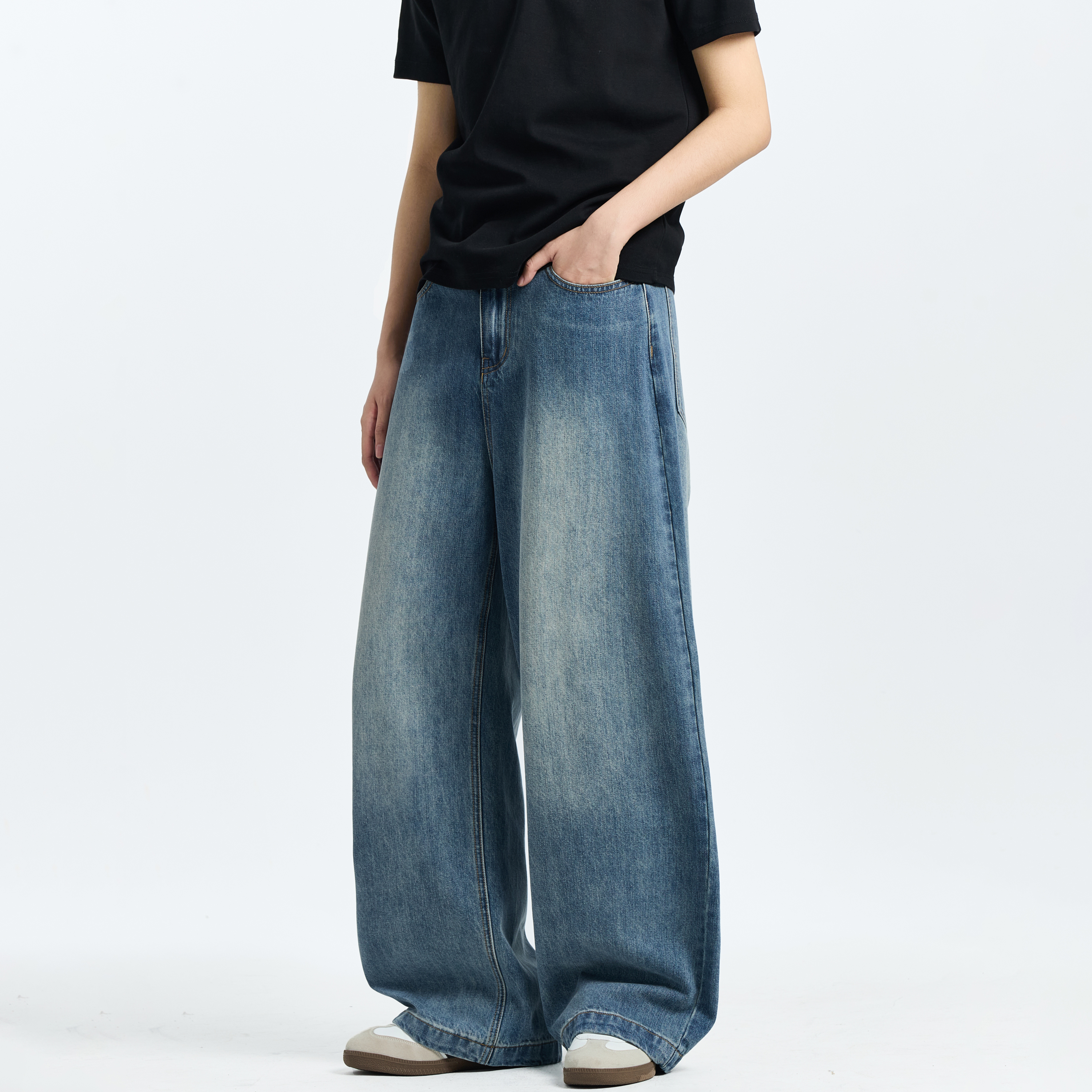 女2025新款 不易掉色裤 秋季 阔腿裤 宽松窄版 娅丽达丹宁蓝直筒牛仔裤
