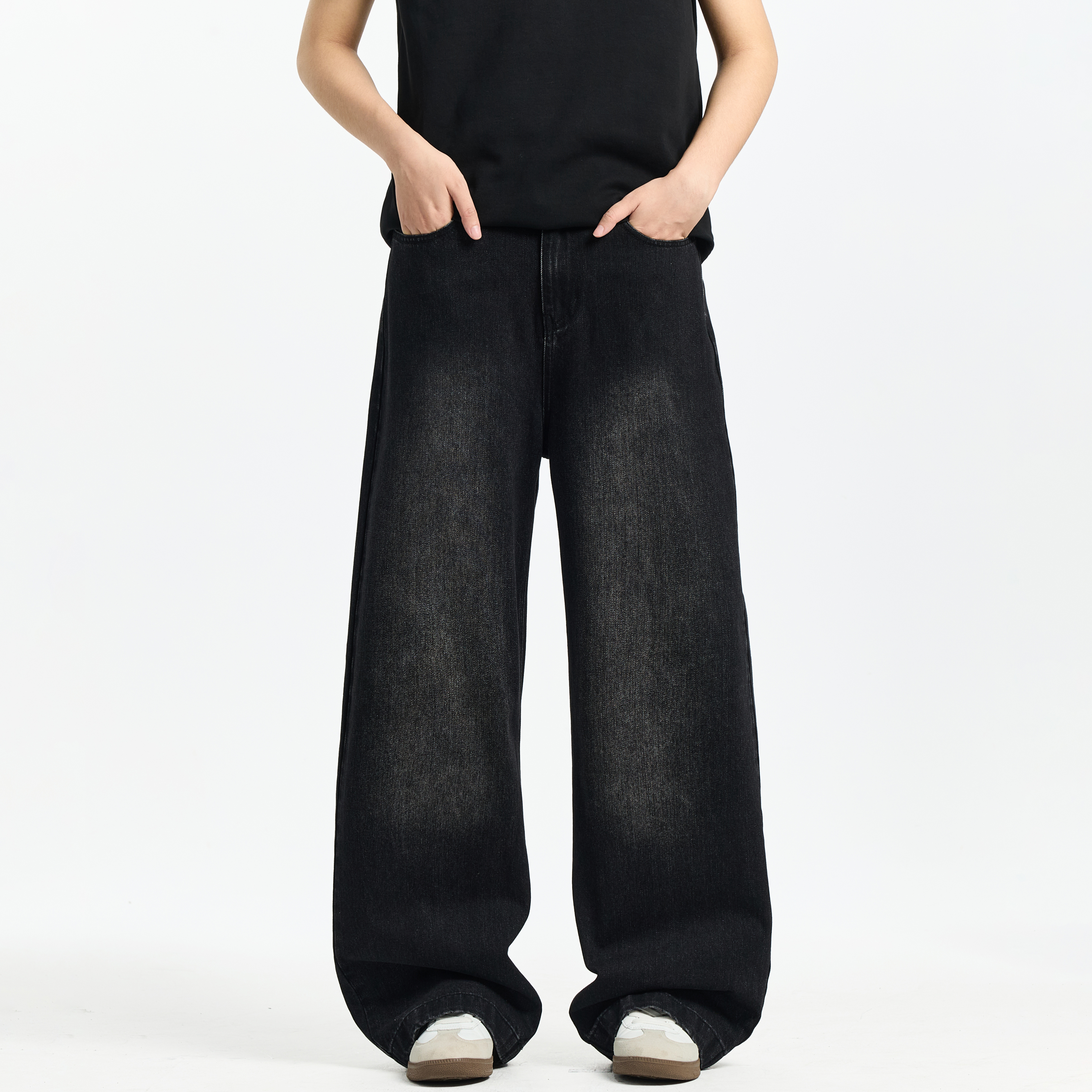 大直筒牛仔裤 加绒上新 2025秋冬新款 高腰阔腿牛仔裤 太平鸟广角裤