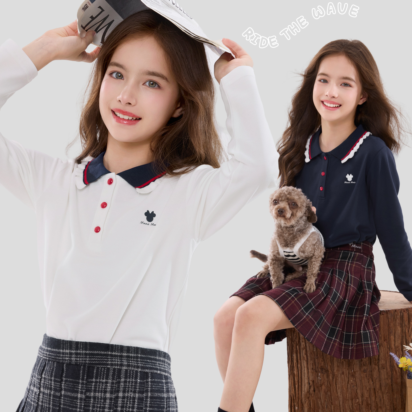 长袖 青少年童装 秋装 儿童T恤学院风大童打底衫 2025新款 女童POLO衫