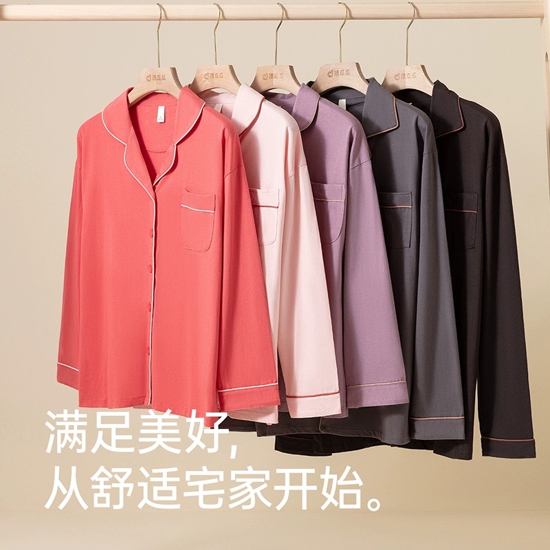睡衣情侣可外穿家居服套装 顶瓜瓜开襟翻领长袖 女士秋季 男士 长裤