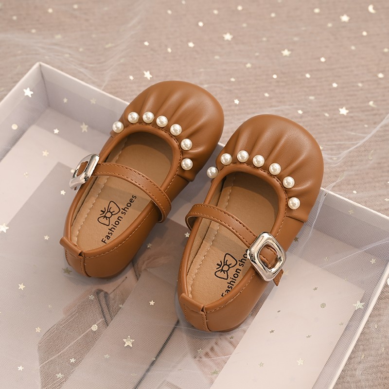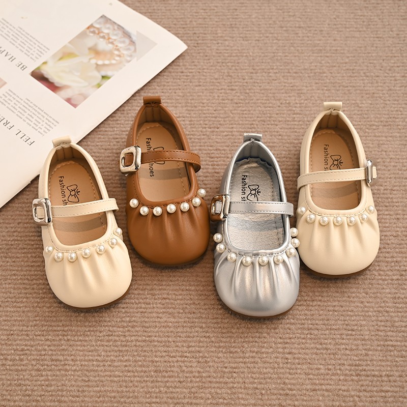 单鞋 女童皮小鞋 珍珠软底豆豆鞋 小女孩搭配礼服公主鞋 2025春秋新款