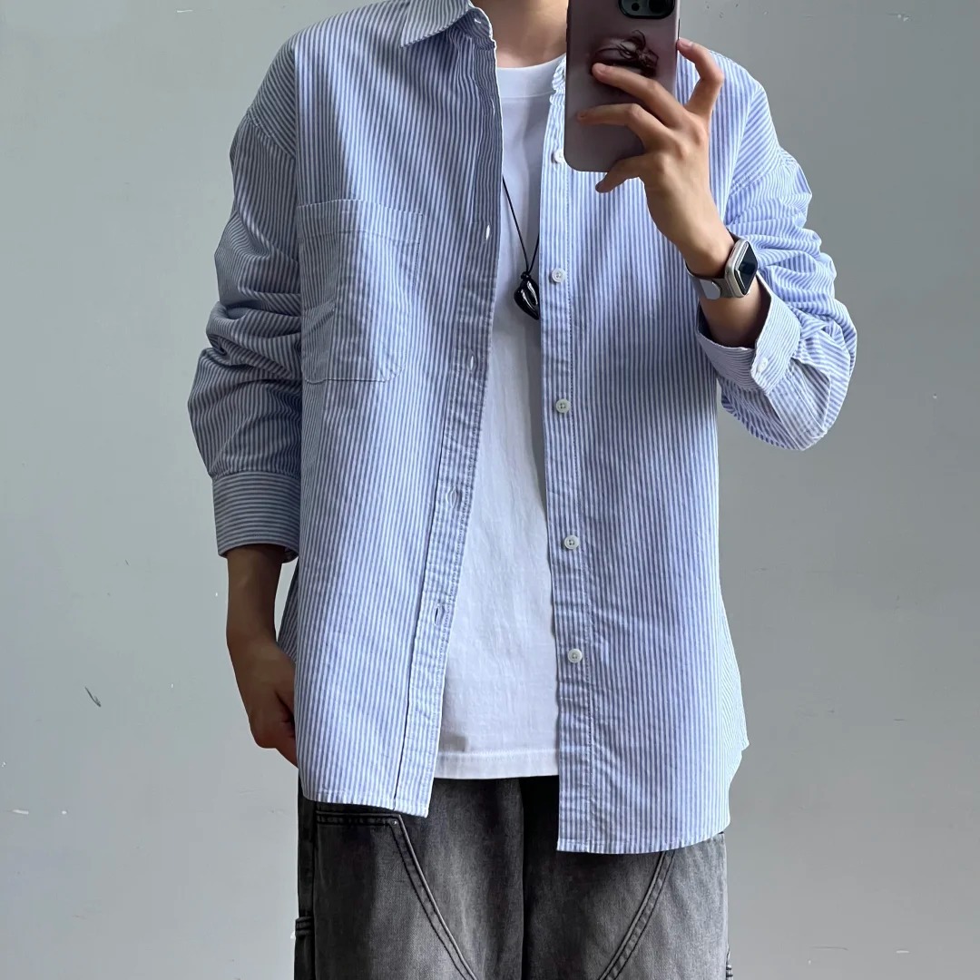 加绒加厚百搭高级感痞帅初中生 外套男春秋新款 青少年牛仔长袖 衬衫