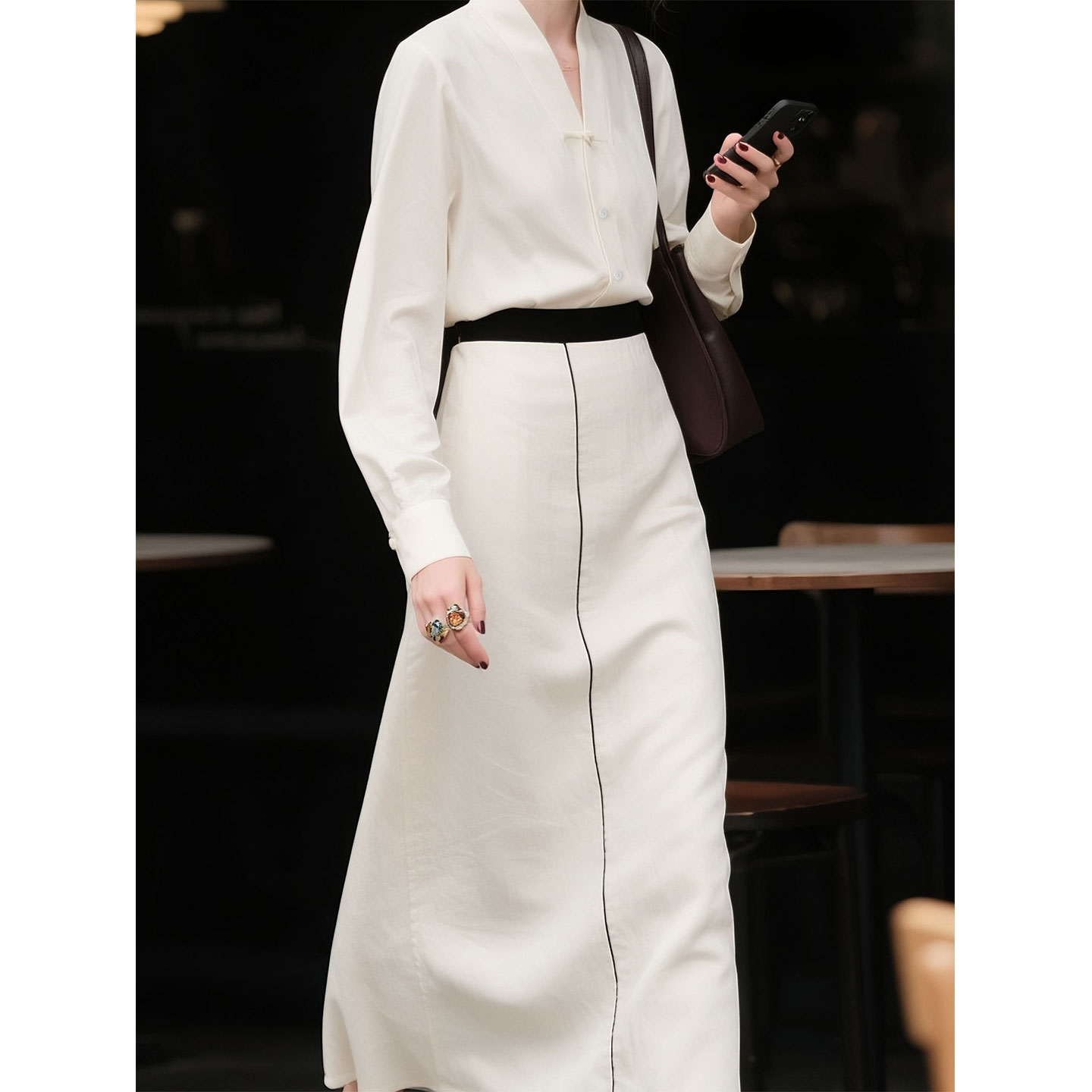 国风套装 衬衫 裙女2025年秋季 通勤女装 半身裙两件套 新款 白色新中式
