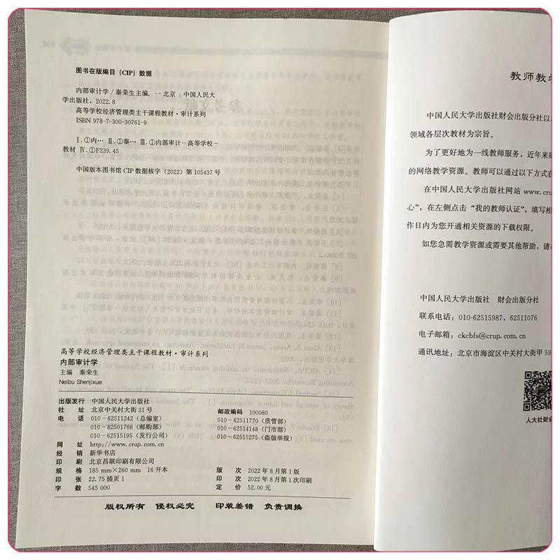 高等学校经济管理类主干课程教材 秦荣生 审计系列 9787300307619 社 2022新版 中国人民大学出版 内部审计学