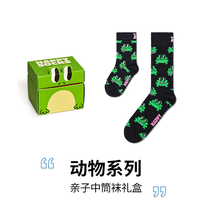 亲子款 新品 礼盒 Socks潮牌时尚 青蛙袜子可爱百搭中筒袜 Happy