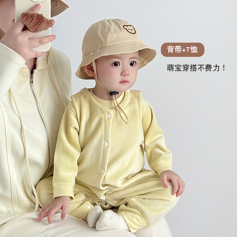 新款 超萌可爱秋装 长袖 两件套装 外出服 上衣婴儿背带裤 男女宝宝秋季