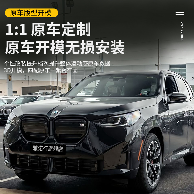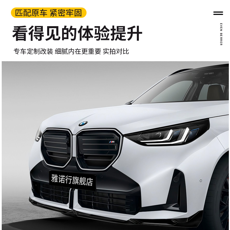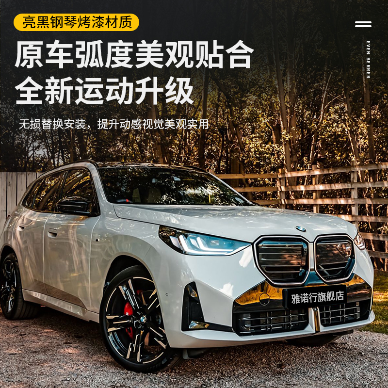 MP改装 粘贴无损安装 件 宝马X3中网后唇运动獠牙黑化改装 适用于25款