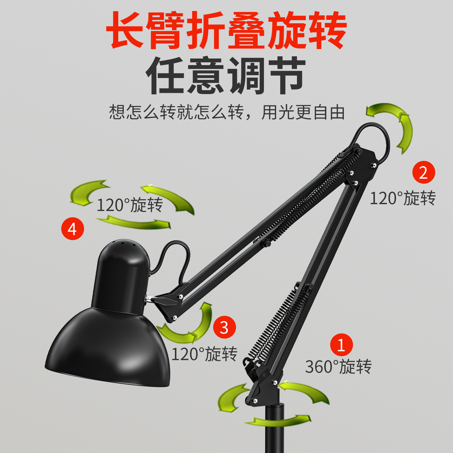 长臂折叠全光谱落地灯LED遥控北欧客厅卧室房间书房阅读立式 台灯