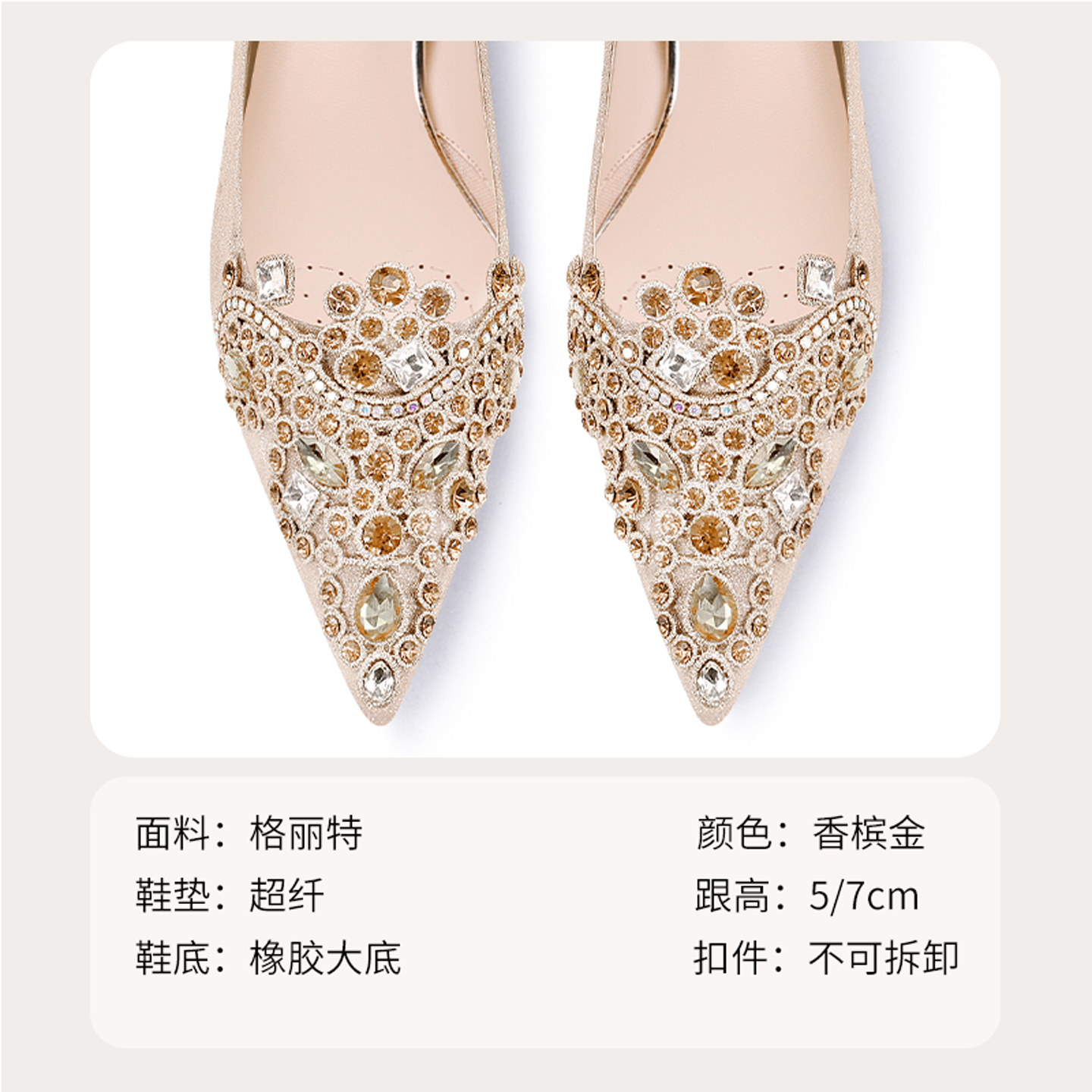 香槟色禾秀主婚纱两穿新娘鞋 秋季 不累脚 女2025新款 爱丽拉高跟婚鞋