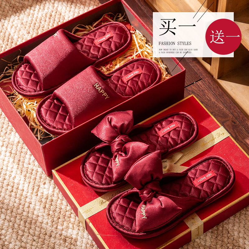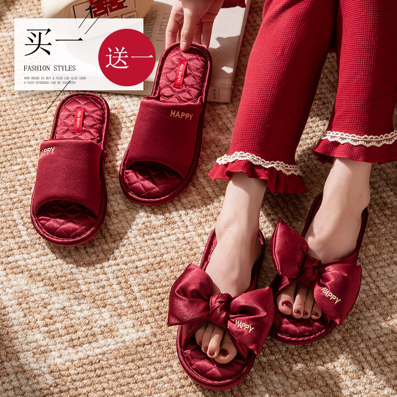 拖鞋 女夏 结婚一对红色喜庆高级轻奢陪嫁婚礼家居室内防滑情侣拖鞋