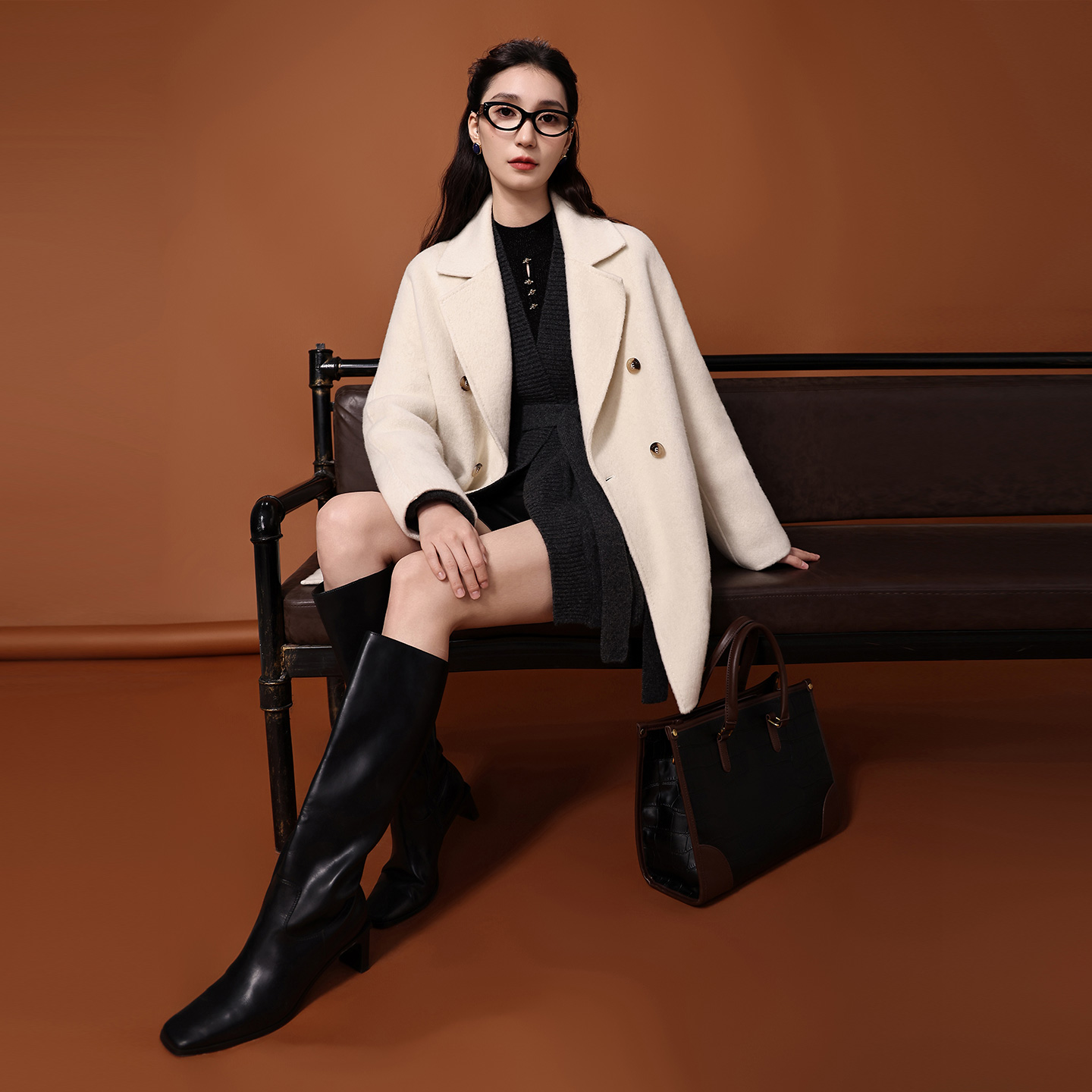 801西服领羊绒大衣女毛呢外套4785 经典 东黎山羊绒 女士秋冬中长款