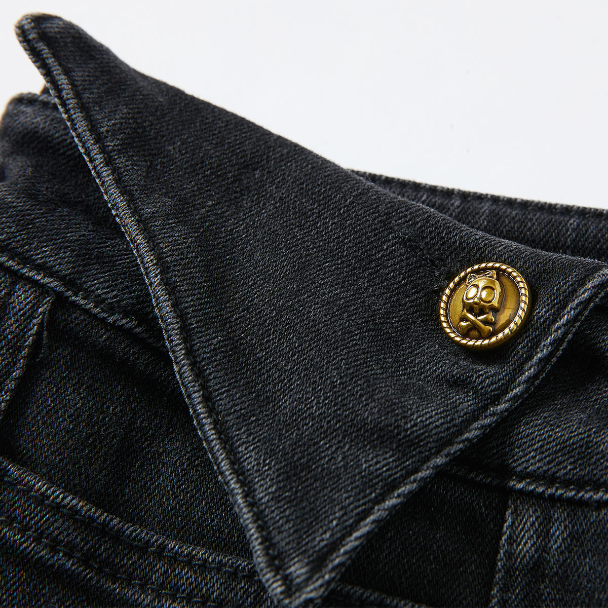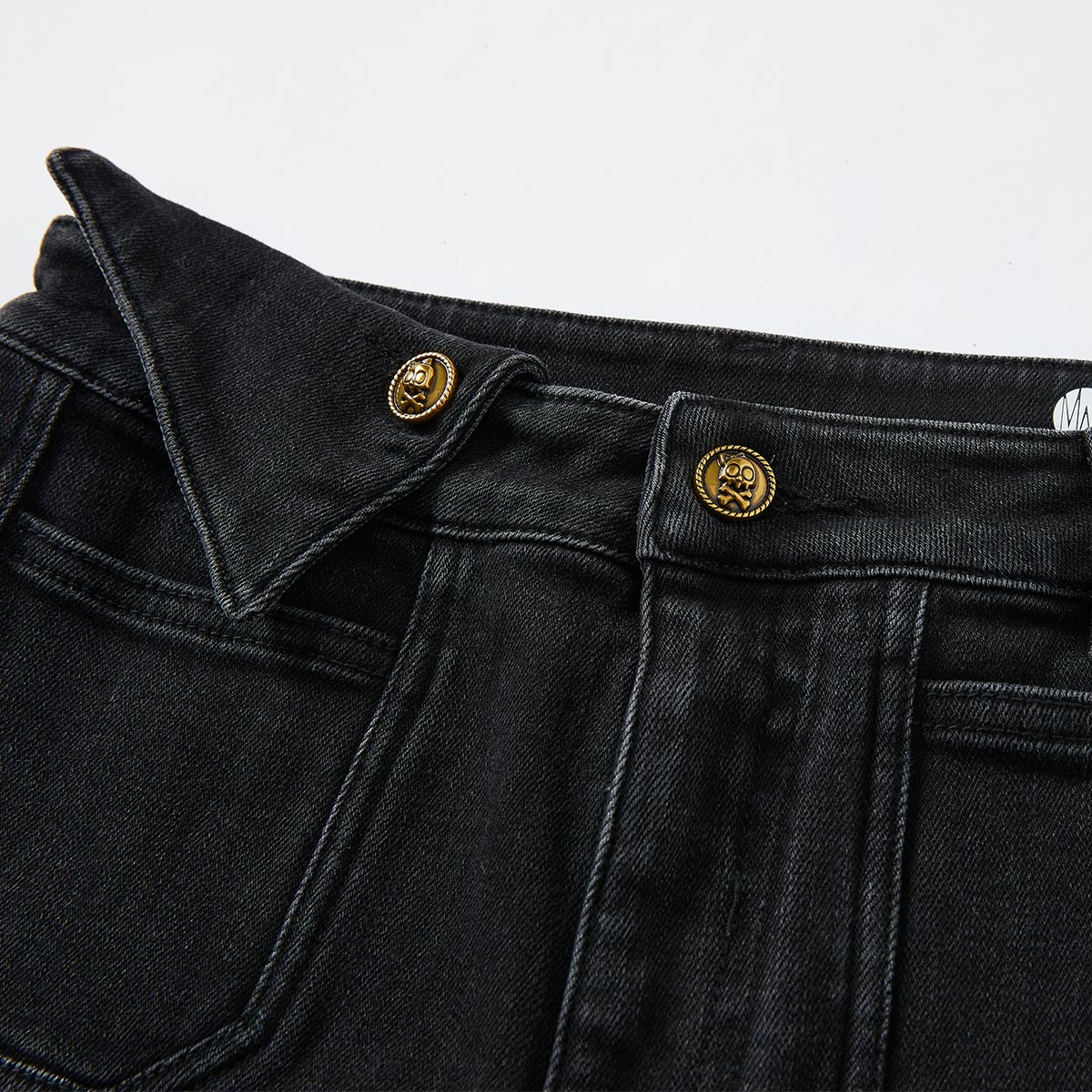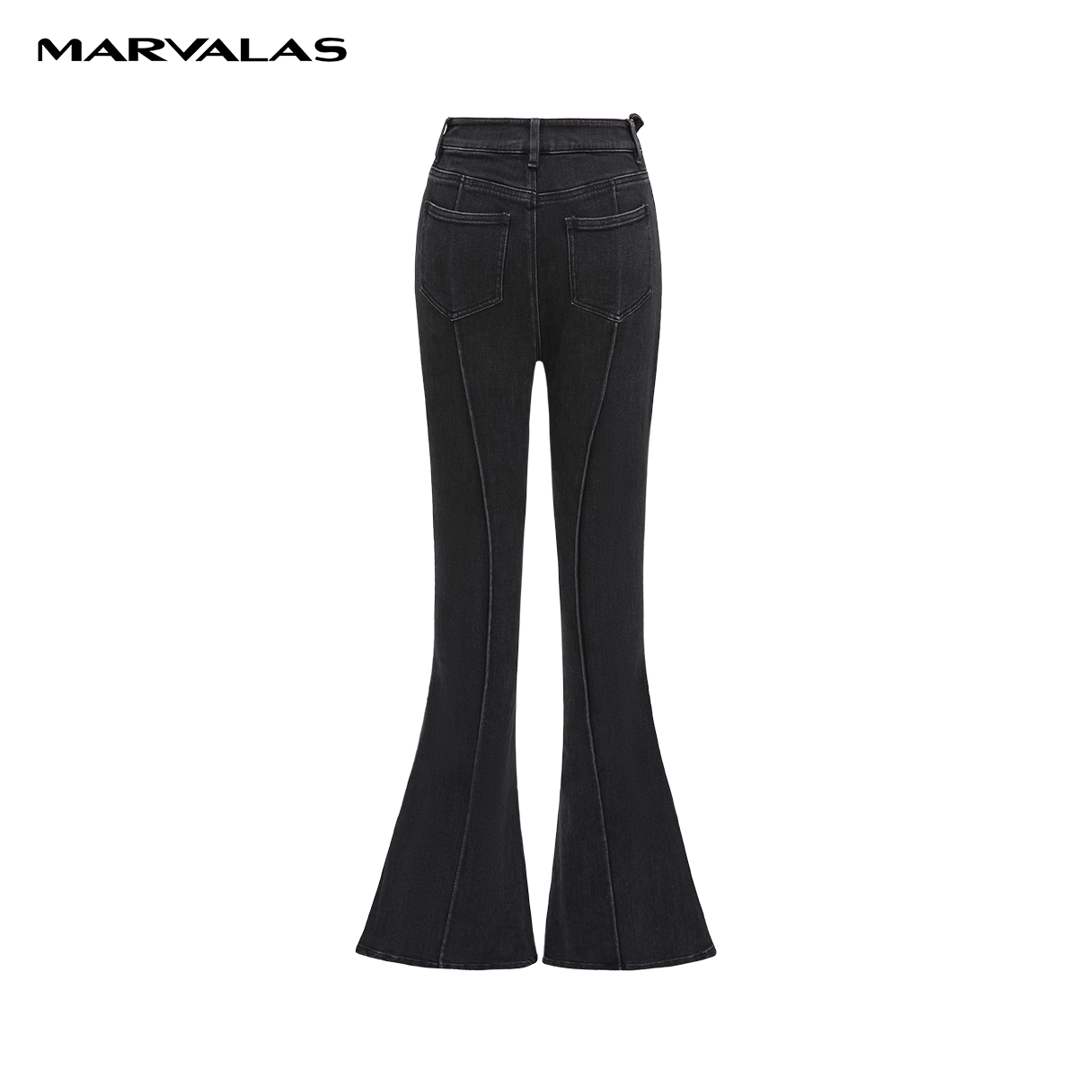烫钻高腰棉喇叭裤 MISSCOCOON可可尼深蓝色牛仔裤 女2025秋冬新款