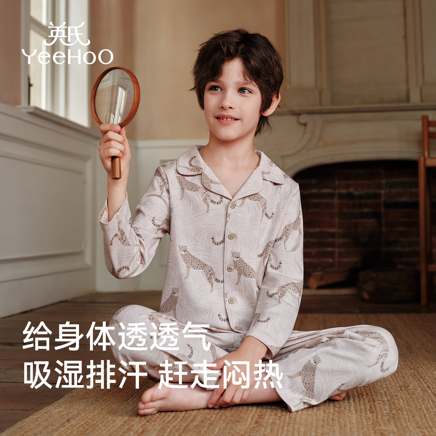 英氏儿童睡衣春秋2025新款 抑菌 纯棉a类家居服男女孩居家全棉套装