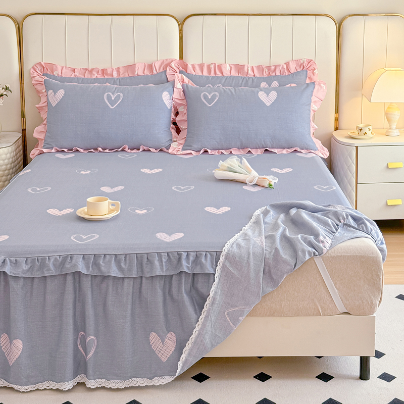 韩版 通用床上用品 公主风全棉床裙四件套纯棉防滑床罩花边被套四季