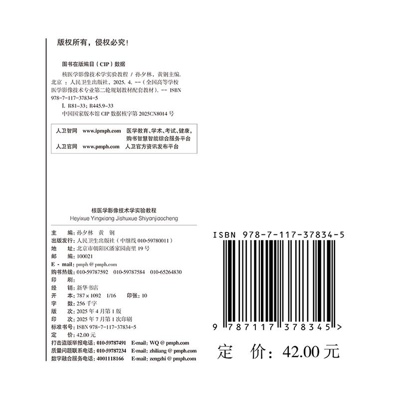 本科教材影像技术配套习题 人民卫生出版 孙夕林 平装 社9787117378345 黄钢 核医学影像技术学实验教程