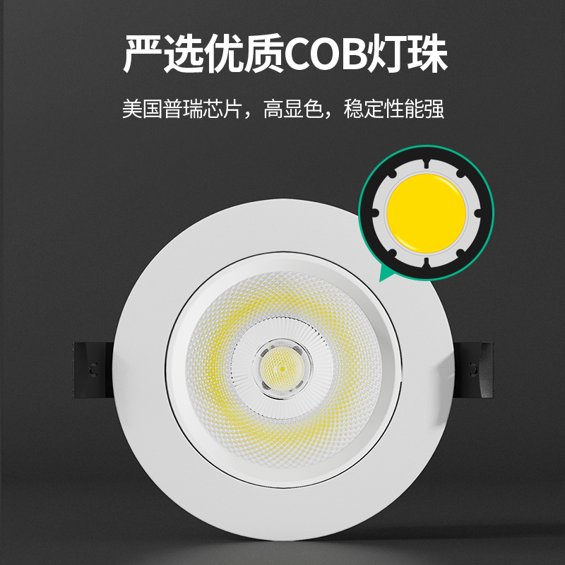射灯led天花灯家用嵌入式 店开孔筒灯背景墙cob5w7w聚光牛眼灯 服装