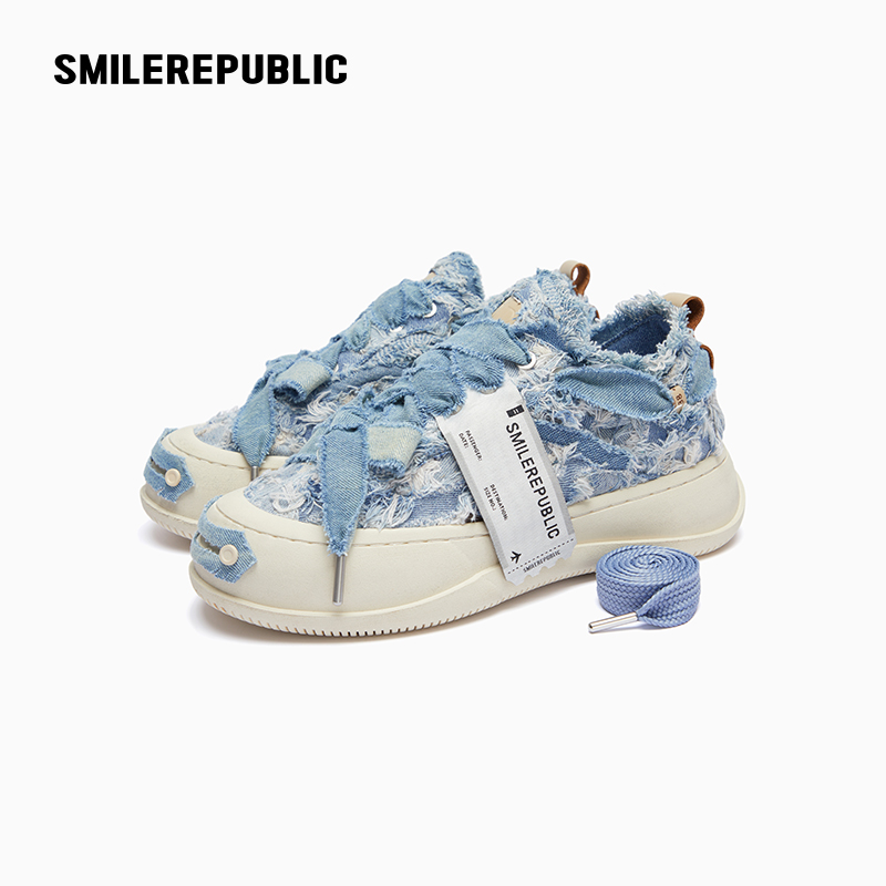 顽刻官方海军蓝春季 校园风W系列翻毛皮帆布拼接男女国潮滑板鞋
