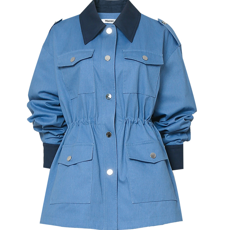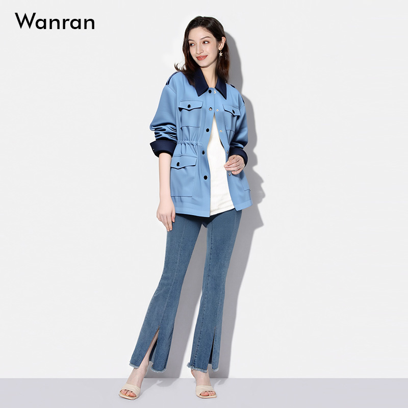 风牛仔外套女装 2025秋季 气质百搭复古翻领夹克工装 时尚 新款