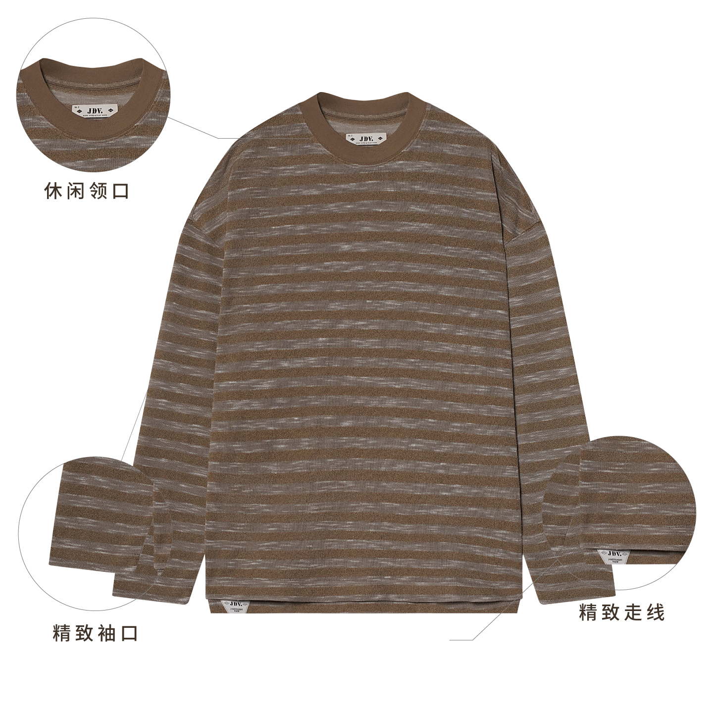 新品 JDV男装 T恤2025年秋季 条纹长袖 宽松休闲复古内搭上衣 商场同款