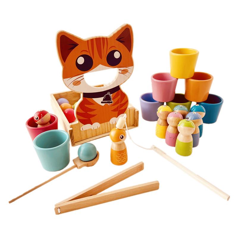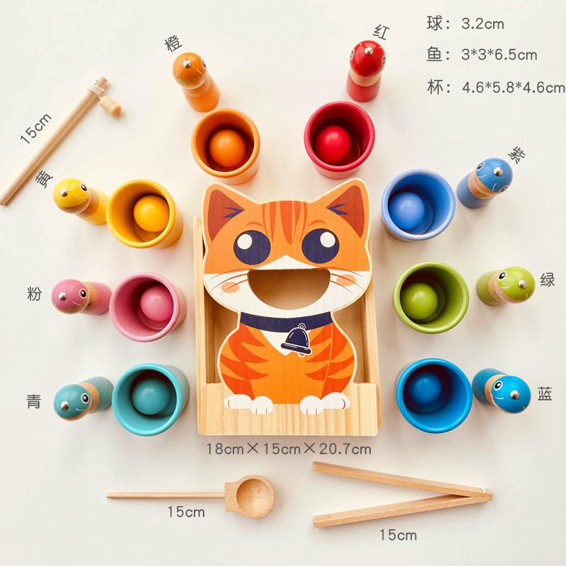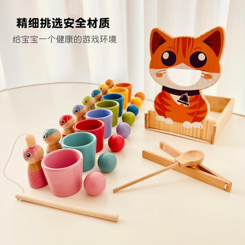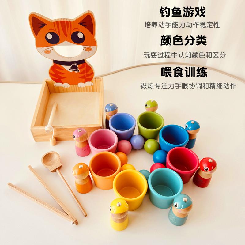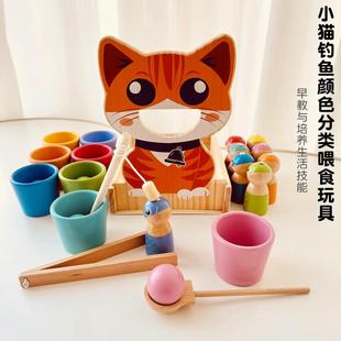 蒙氏早教益智玩具颜色分类球钓鱼喂食启蒙认知专注力精细动作教具