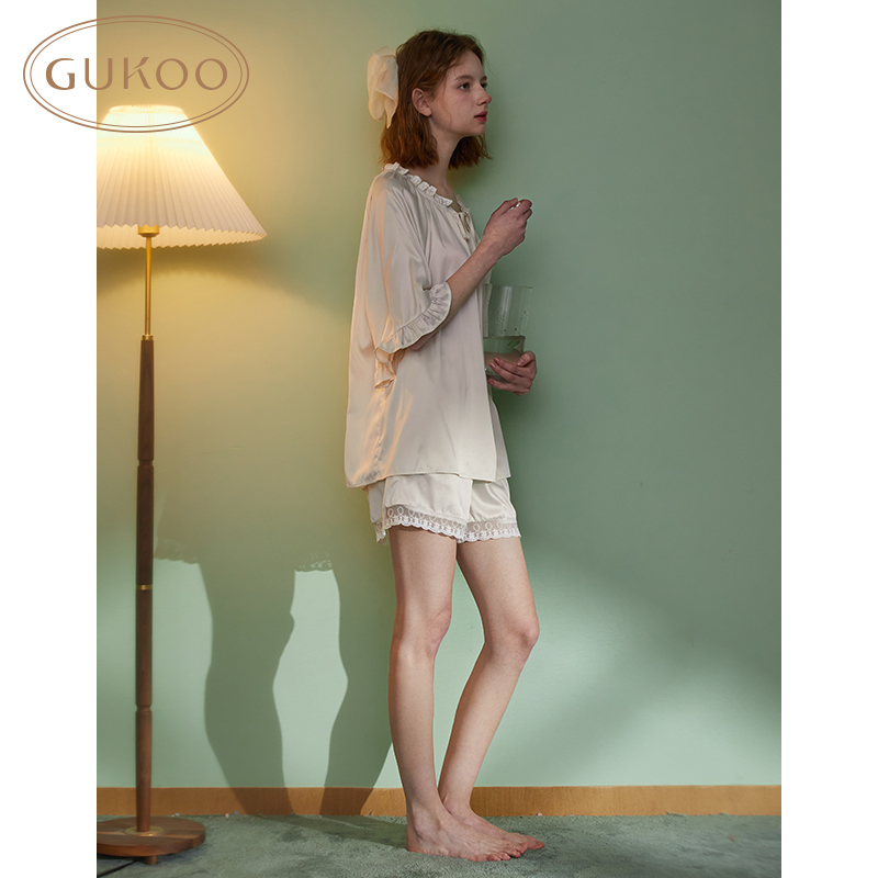 家居服套装 纯色冰丝质感公主风短袖 果壳睡衣女夏款 Gukoo
