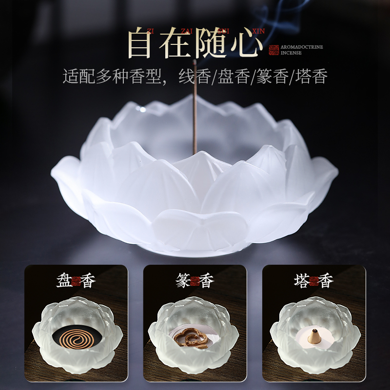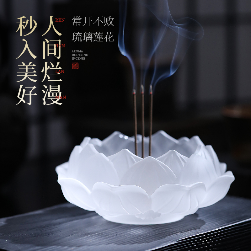 大号琉璃莲花线香插香炉线香底座家用室内檀香香薰炉香座香托香盘