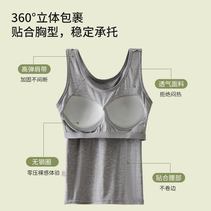 大码 新款 打底上衣 2025夏季 莫代尔女士吊带背心免穿文胸罩杯一体式