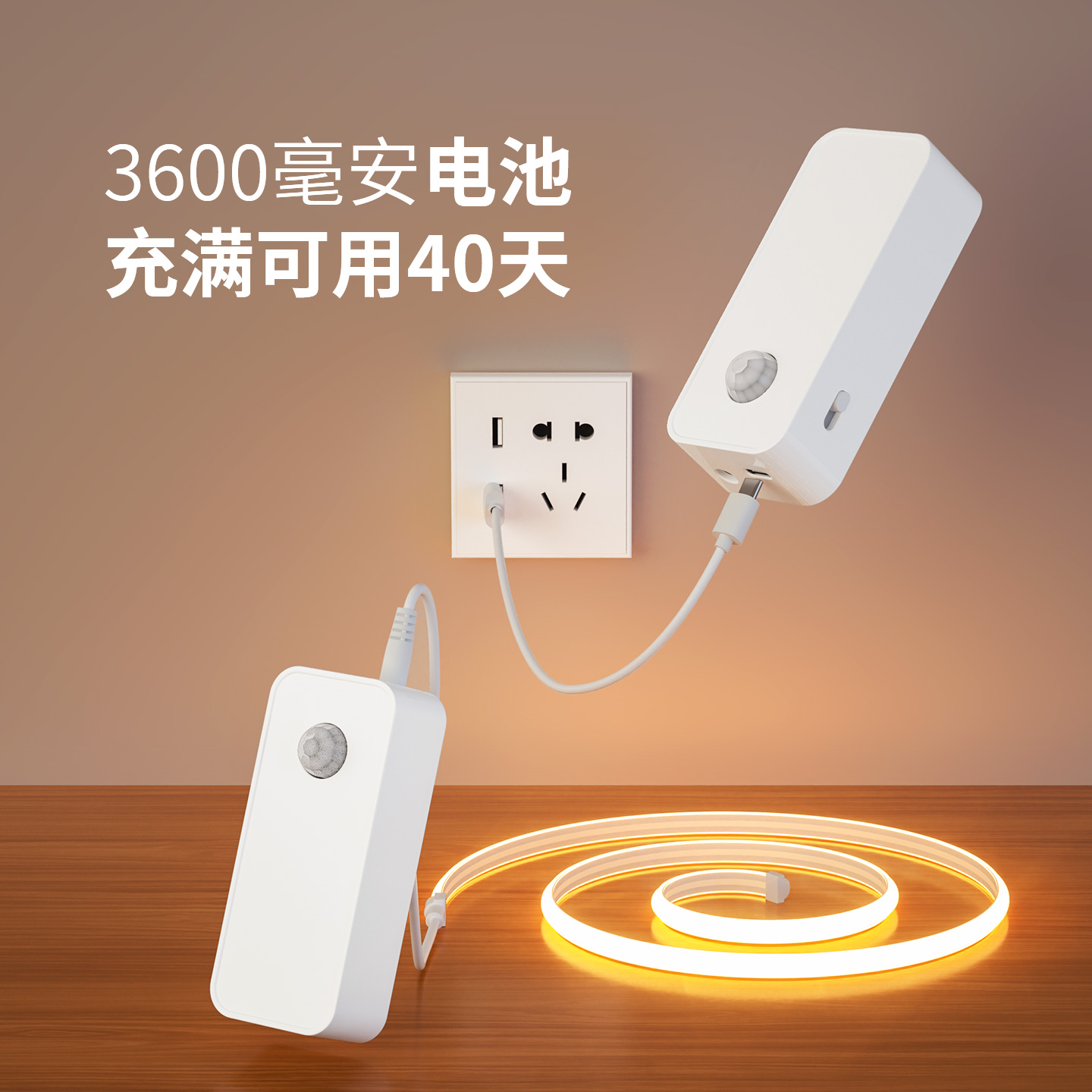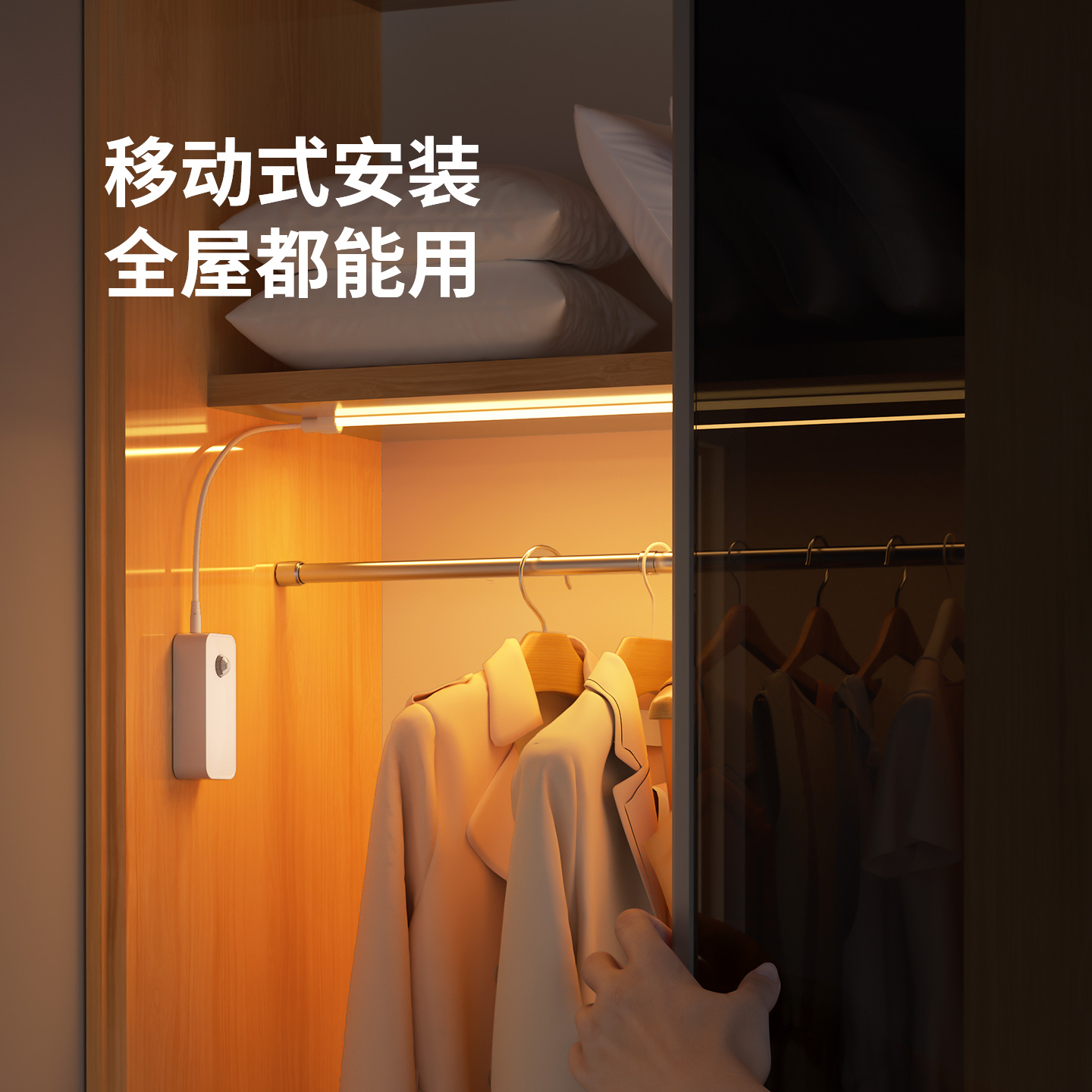 人来即亮充电人体感应灯夜间自动感应灯带过道入户门灯免布线灯条