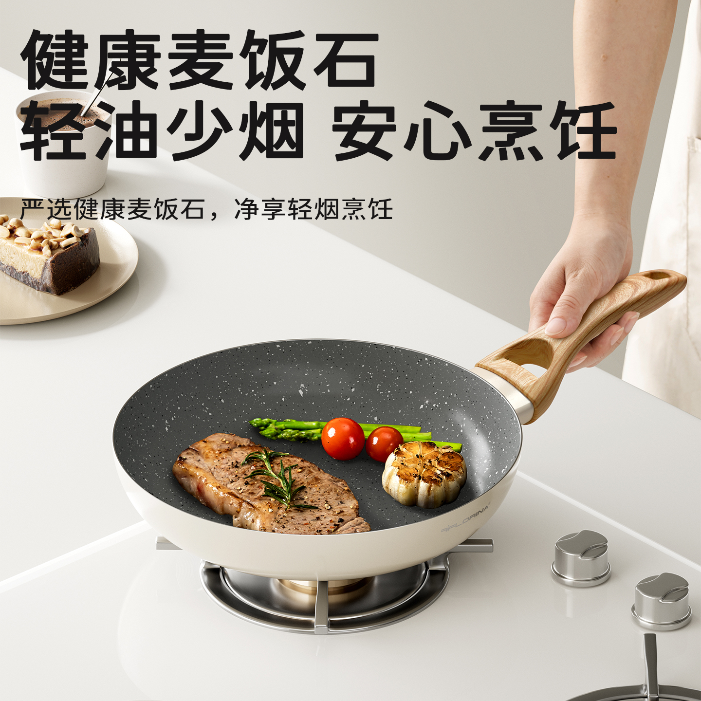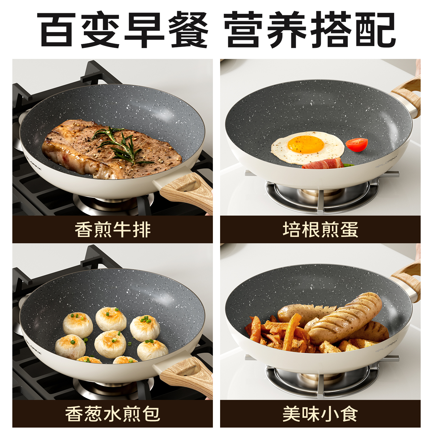 Amercook平底煎锅麦石饭0氟涂层不粘锅家用牛排煎锅煎蛋饼锅