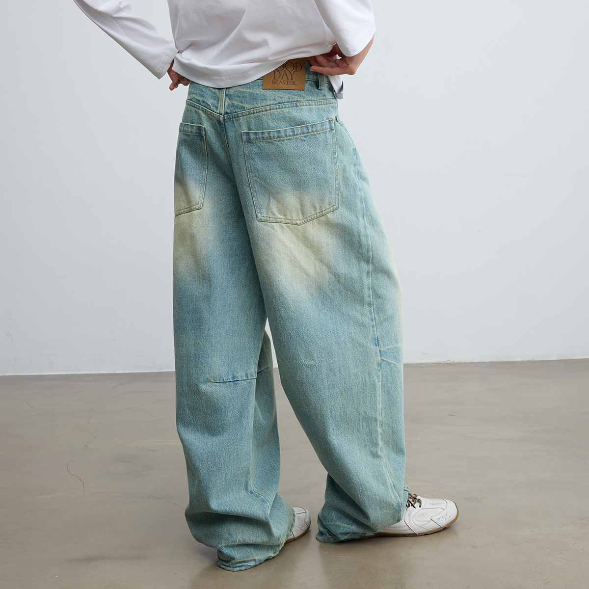 美式 Kuvine秋季 潮牌春秋款 男款 怀旧水洗阔腿 复古宽松直筒牛仔裤