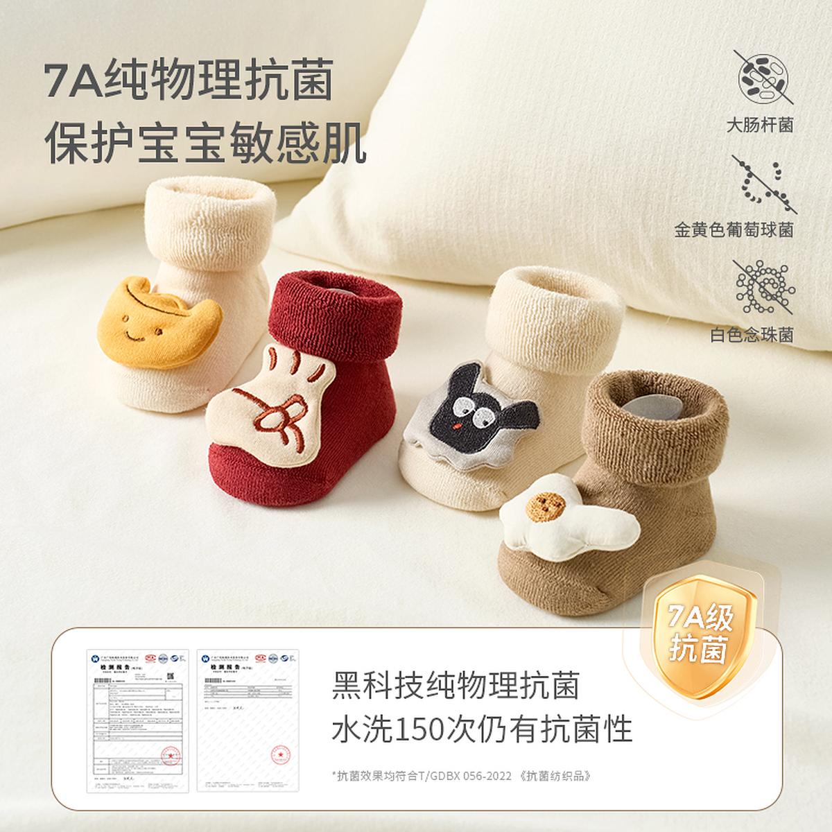 童泰婴儿袜子宝宝加厚毛圈地板袜儿童防滑学步鞋 袜男童女童宽口袜