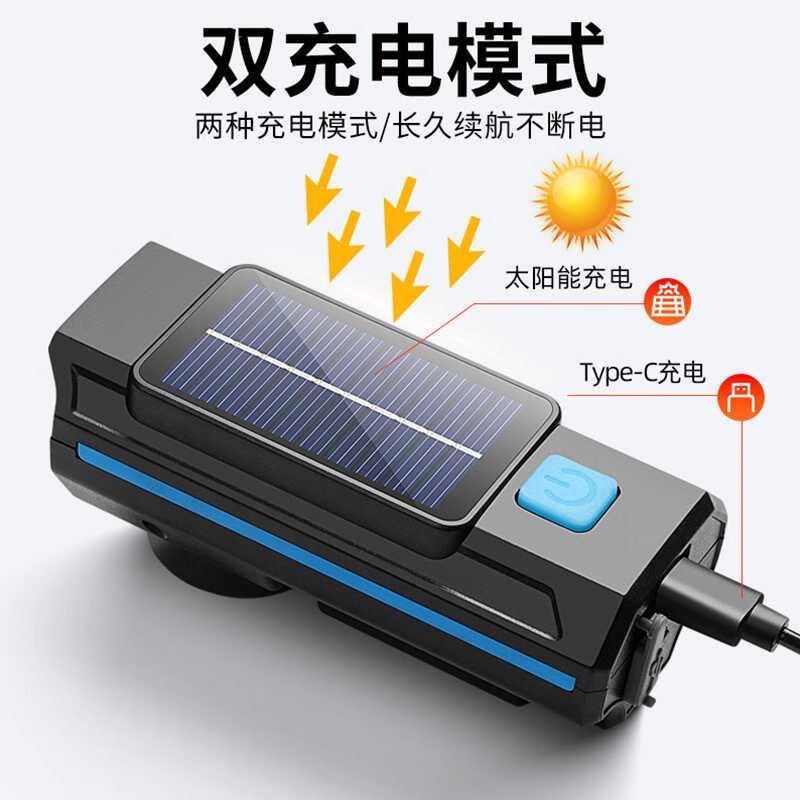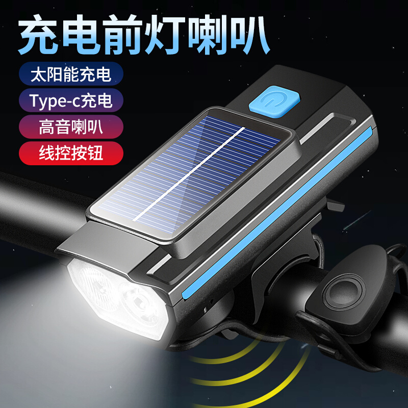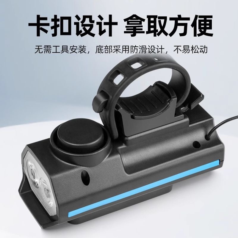 自行车夜骑灯充电强光前灯喇叭灯一体防水单车山地车骑行装 备大全