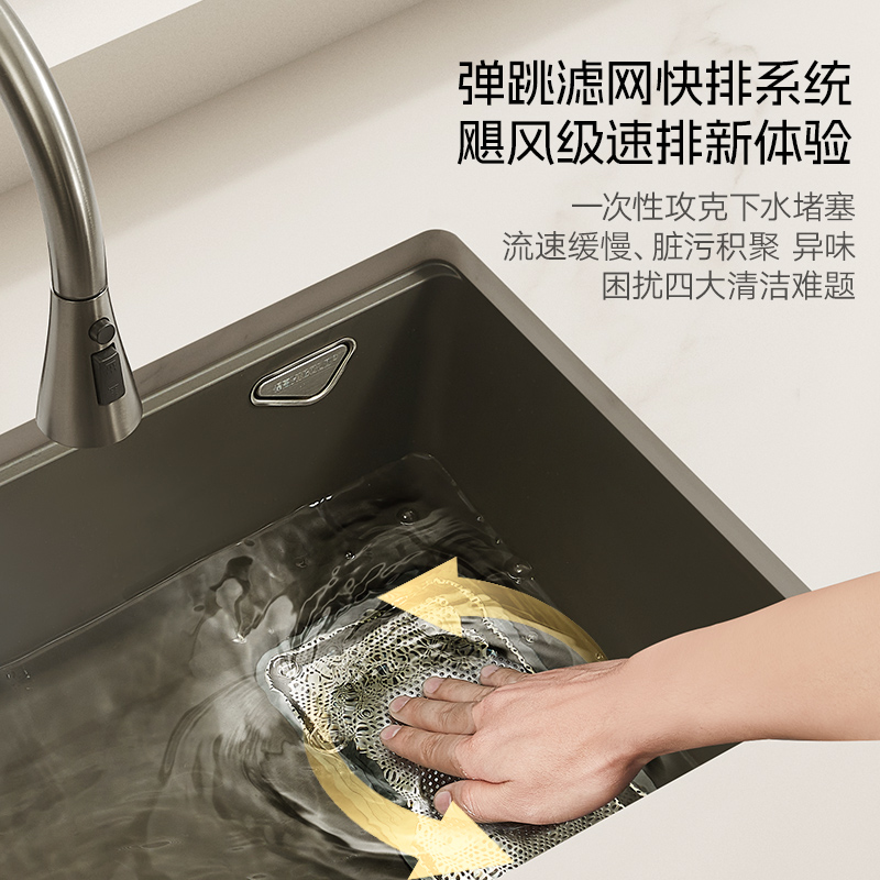 悍高厨房石英水槽双重过滤集渣大单水槽多功能阶梯水槽洗碗切菜盆