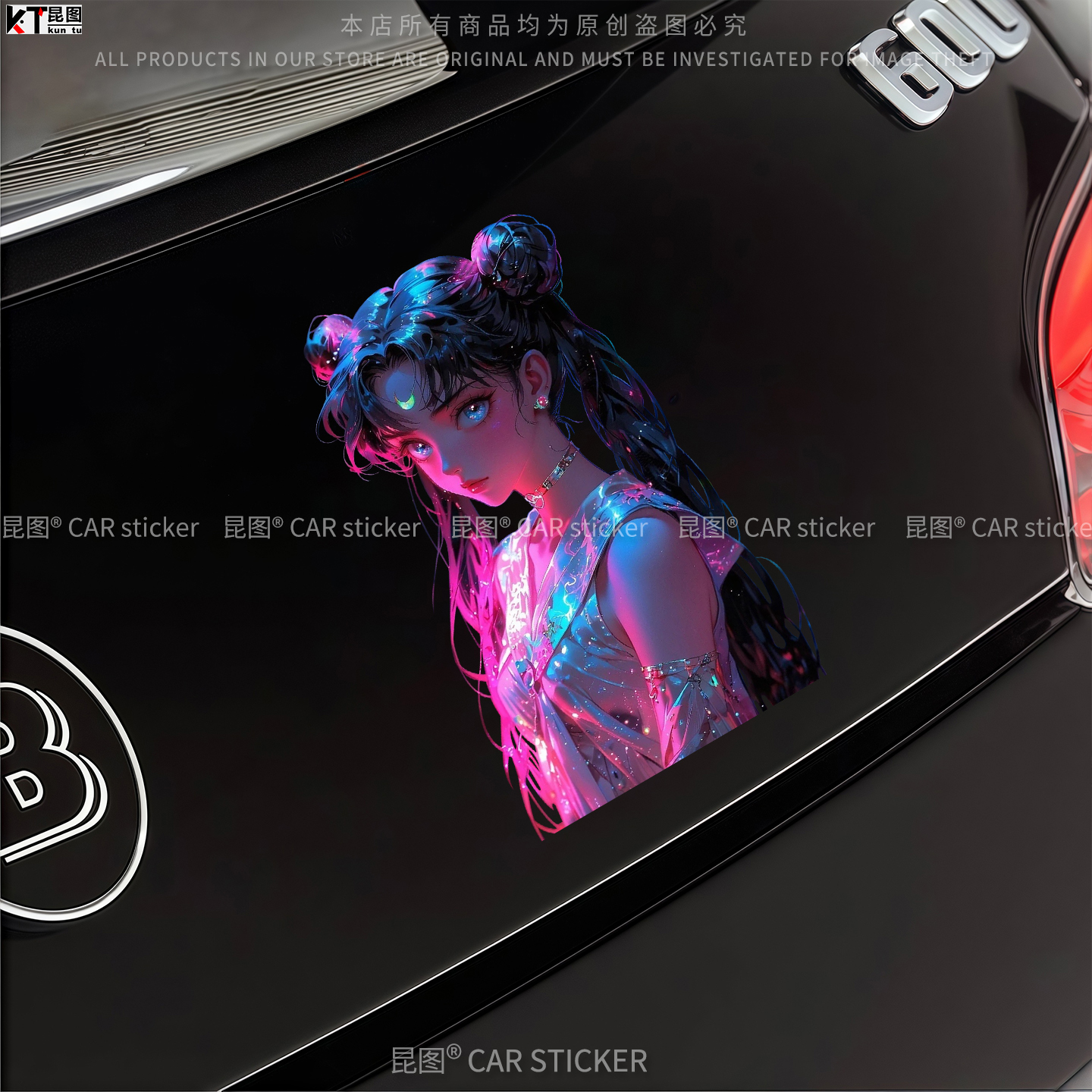 卡通动漫美少女战士反光车贴电动摩托车汽车身行李箱电脑装 饰贴纸
