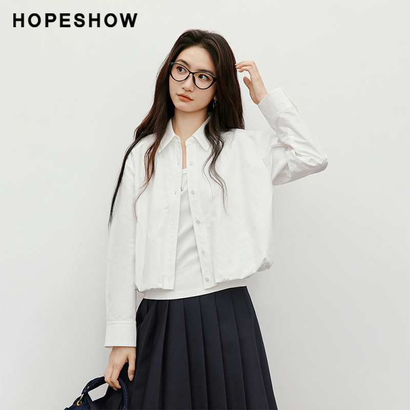 2025秋新款 红袖 女装 100%棉松紧花苞落肩长袖 衬衫 短款 会员专享