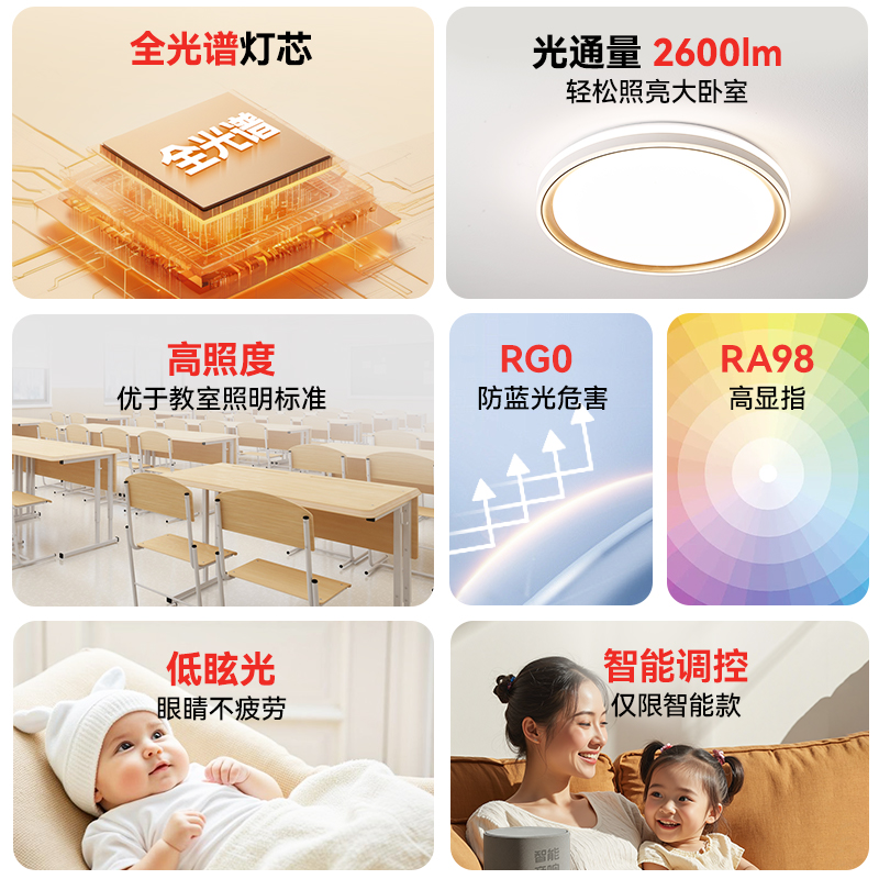 全光谱护眼卧室灯现代简约圆形餐厅客厅灯LED吸顶灯阳台过道灯具
