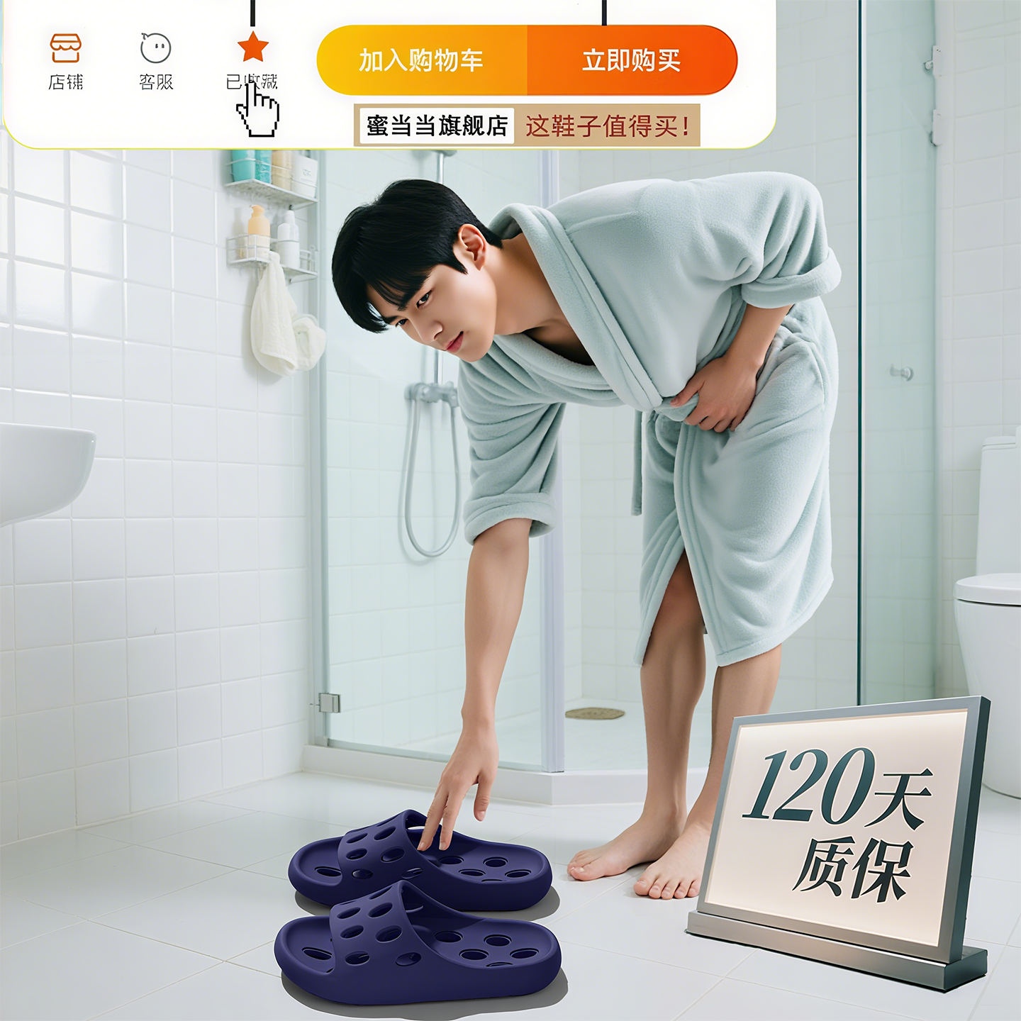 女夏季 浴室拖鞋 室内家居镂空漏水洗澡防滑速干凉拖鞋 2025新款 男士