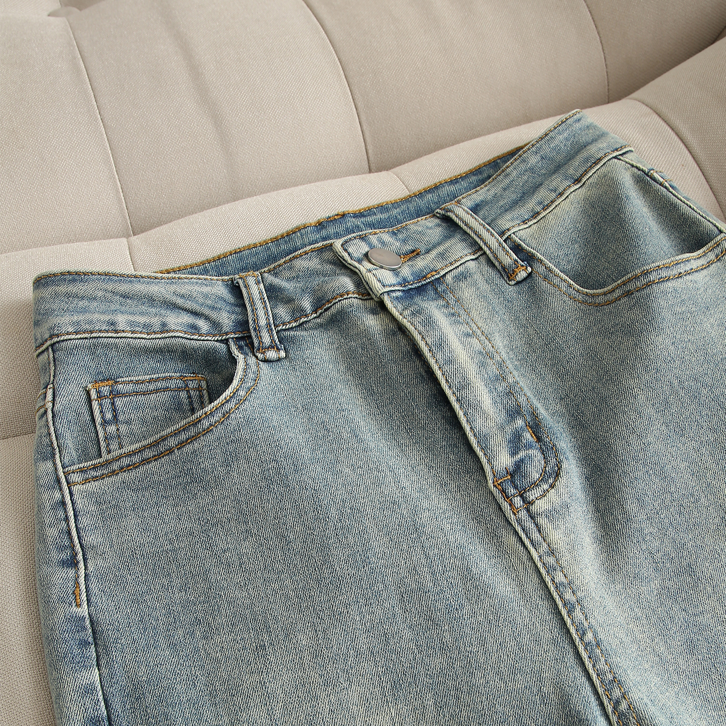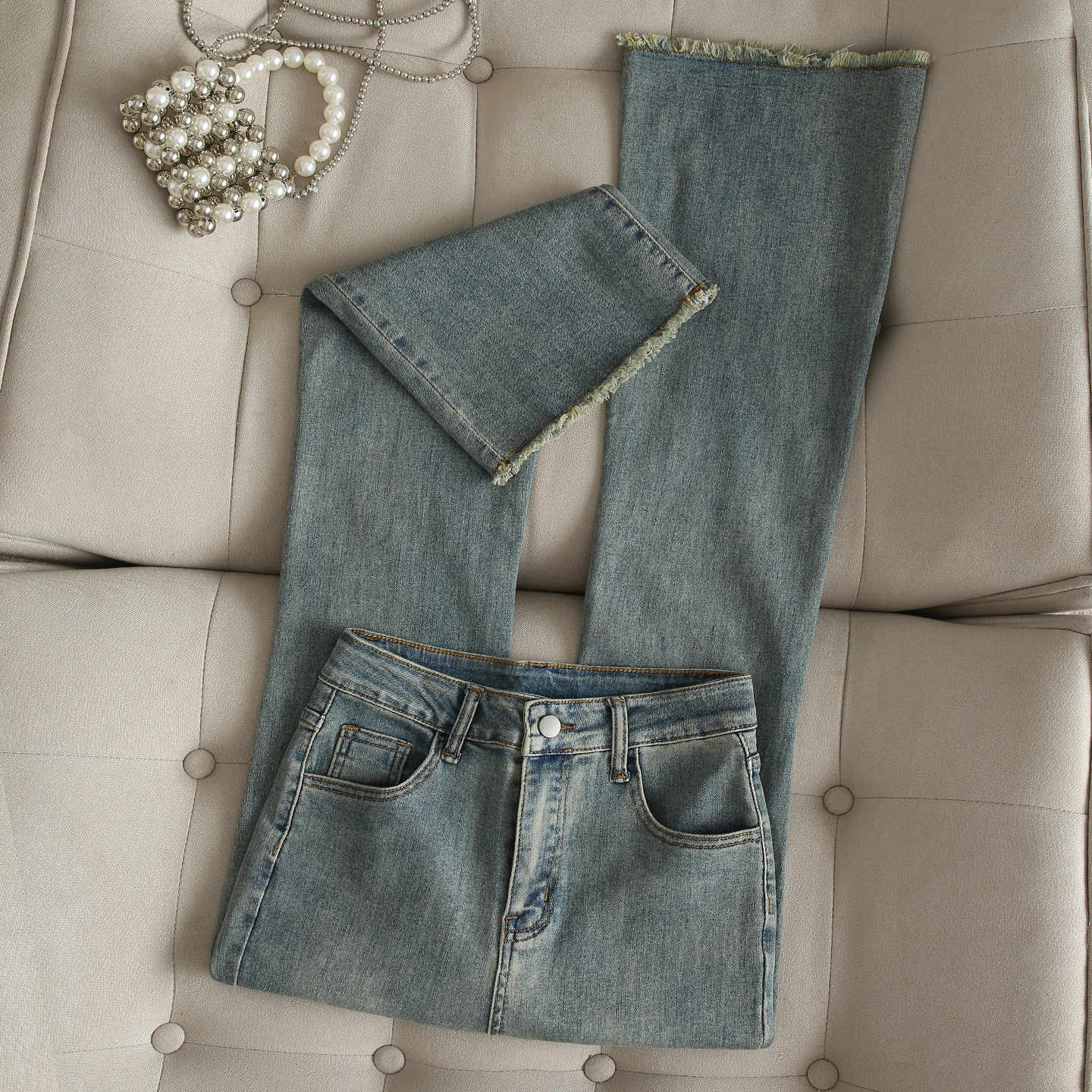 复古弯刀廓形烫钻字母LOGO标拖地牛仔裤 25早秋美式 GOOSE COLOR